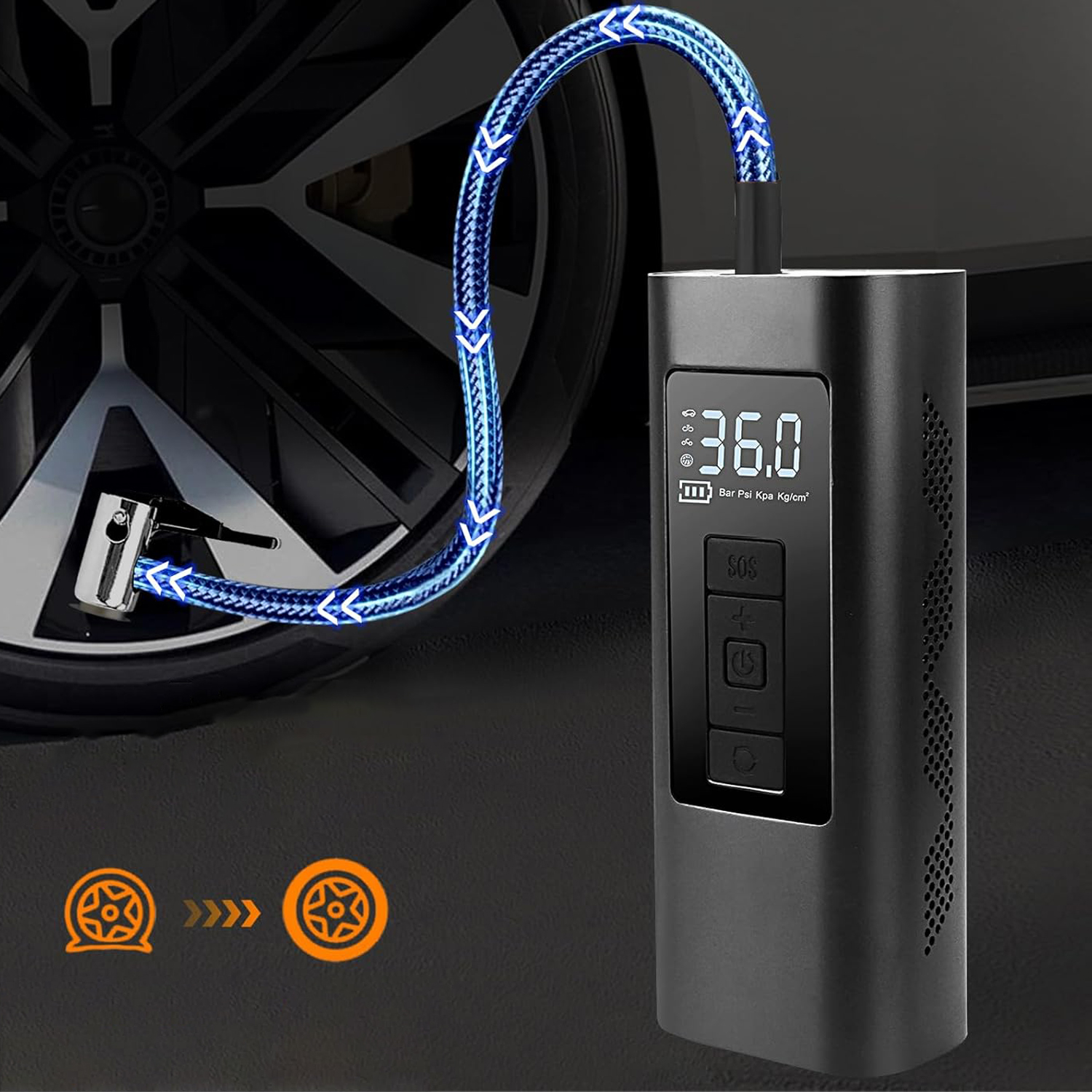 ✅5. Накачка шин с цифровым манометром и подсветкой: ⭐Этот накачиватель шин с цифровым воздушным компрессором оснащен ярким ЖК-экраном, поэтому им можно легко пользоваться даже в темноте. Этот беспроводной насос для накачивания шин также оснащен функциями SOS и подсветкой, которые помогут вам в экстренных ситуациях.