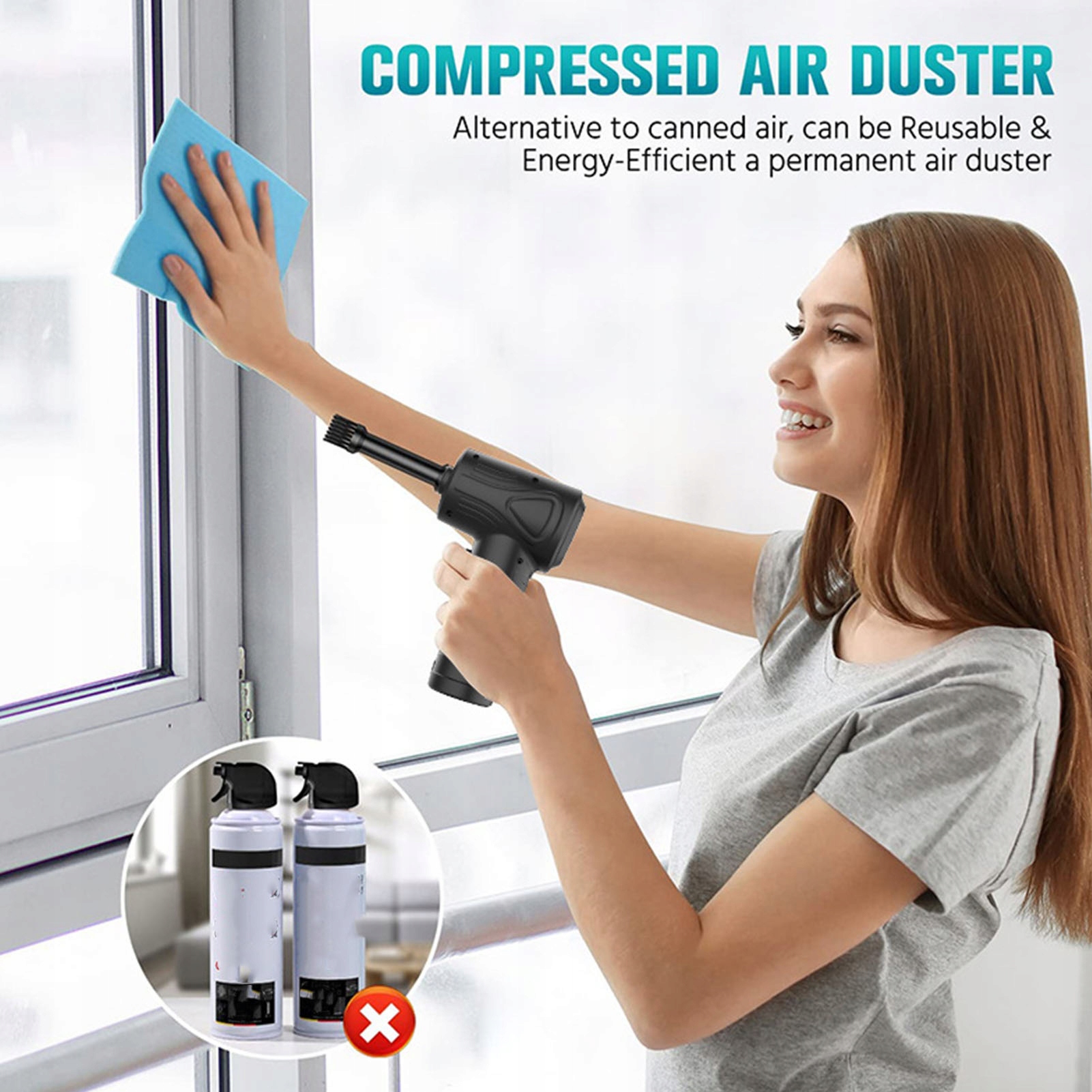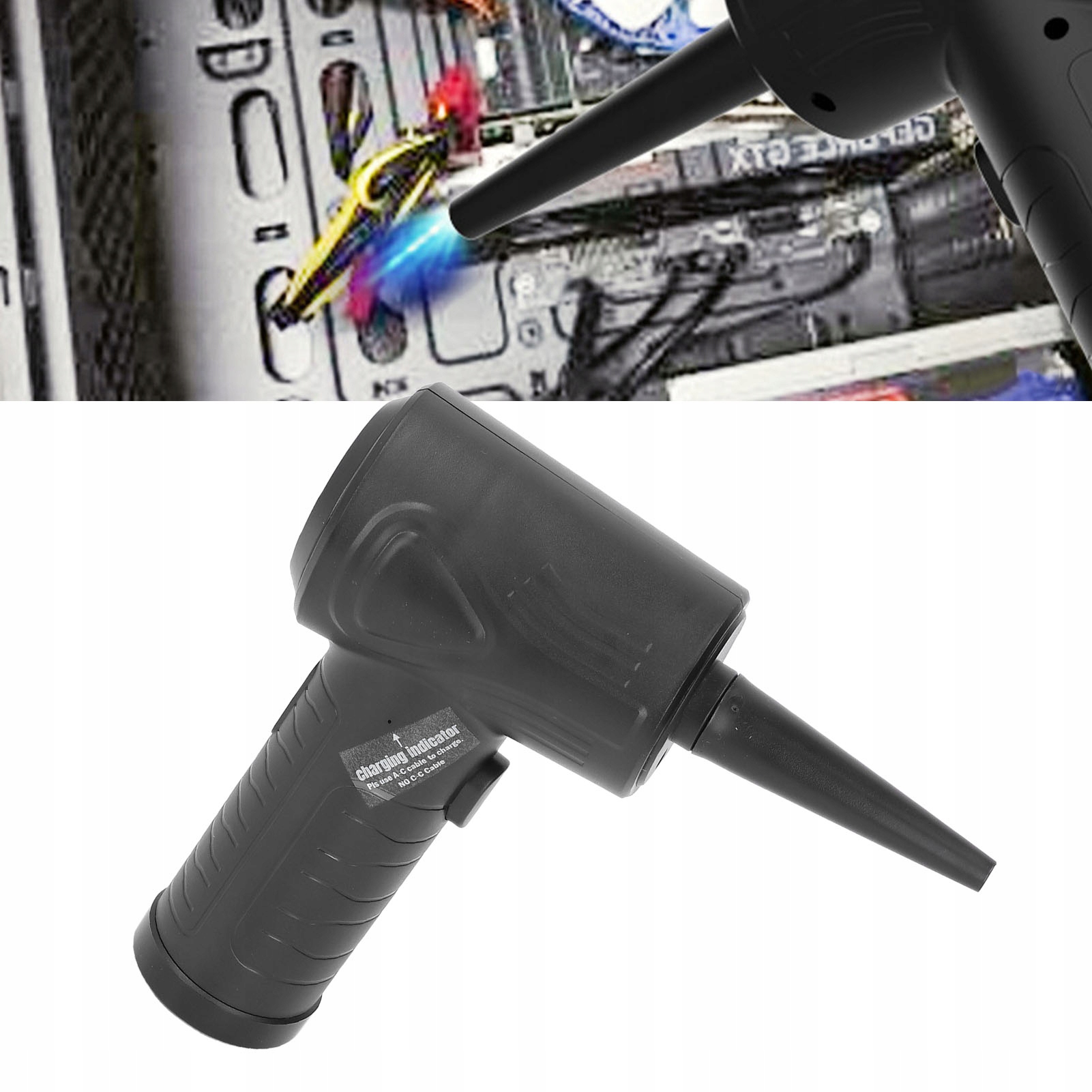 Использование: Этот воздушный компрессор может легко удалить невидимую грязь из щелей клавиатуры, процессоров, ноутбуков, вентиляционных отверстий, жалюзи, щелей дивана, автомобильных подстаканников и автомобильных сидений. Может использоваться для надувных изделий, таких как надувные кровати, спасательные шлюпки и другие надувные изделия.