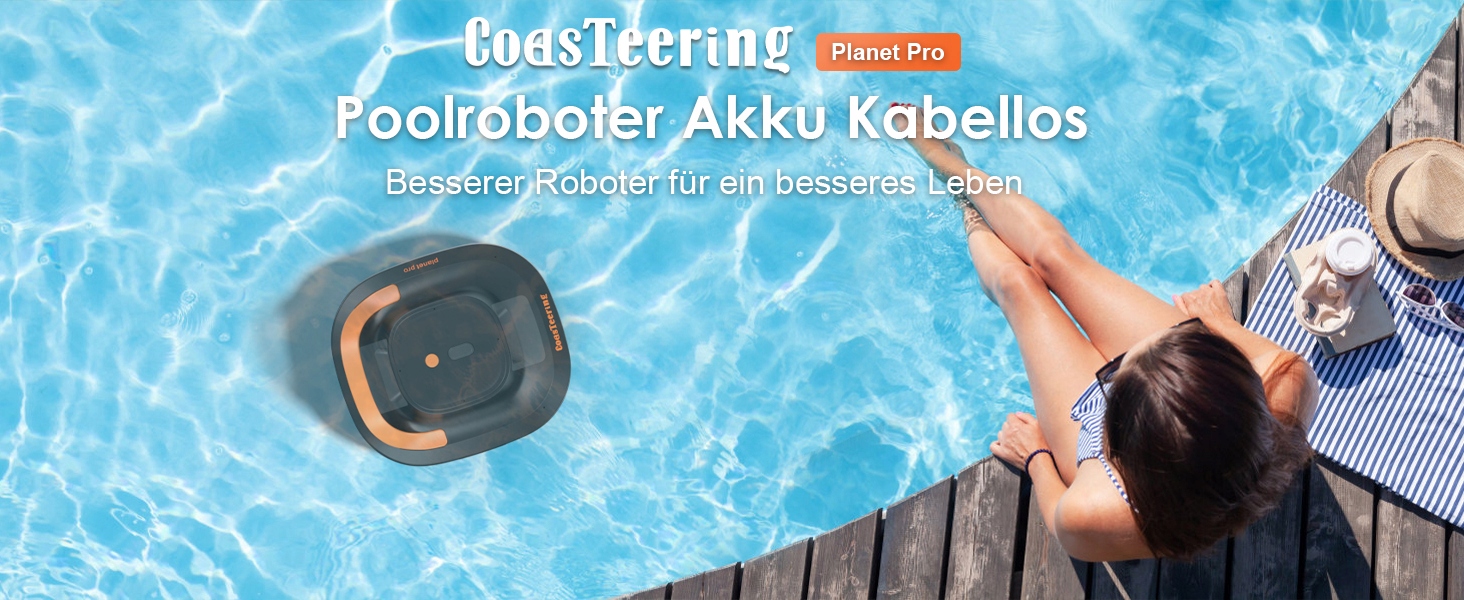 Беспроводной робот для бассейна: робот для бассейна CoasTeering оснащен мощной батареей емкостью 4000 мАч, которая позволяет ему работать в течение 120 минут. Всего за 2,5 часа он полностью заряжается и гарантирует, что ваш плоский бассейн площадью до 120 м² всегда будет выглядеть как новый