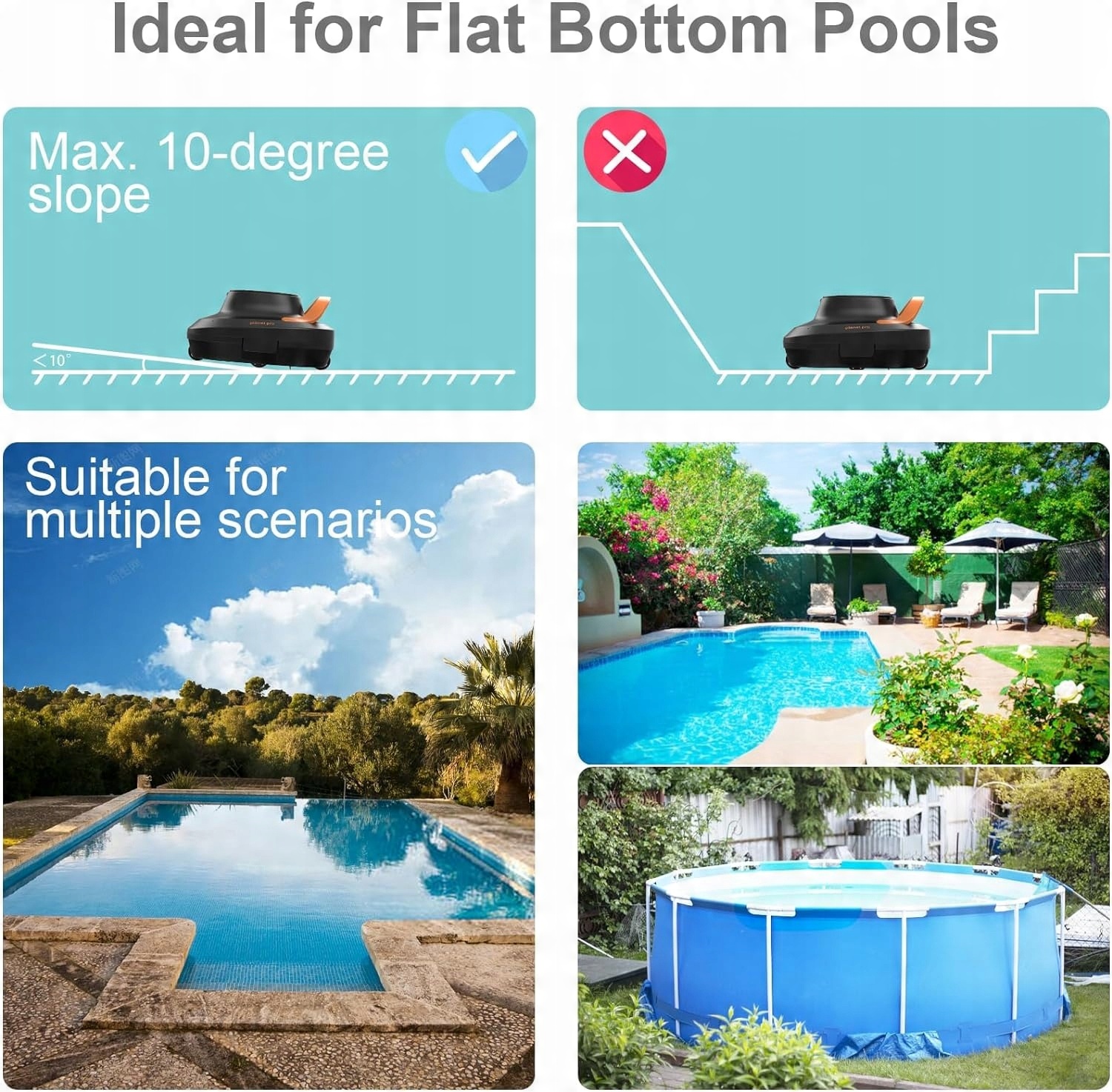 Универсальная совместимость с бассейном: независимо от того, есть ли у вас надземный бассейн или подземный бассейн без уклона, этот пылесос для бассейна станет для вас идеальным выбором. Подходит для большинства типов бассейнов, включая бассейны из ПВХ, винила, мозаичного бетона и стекловолокна.