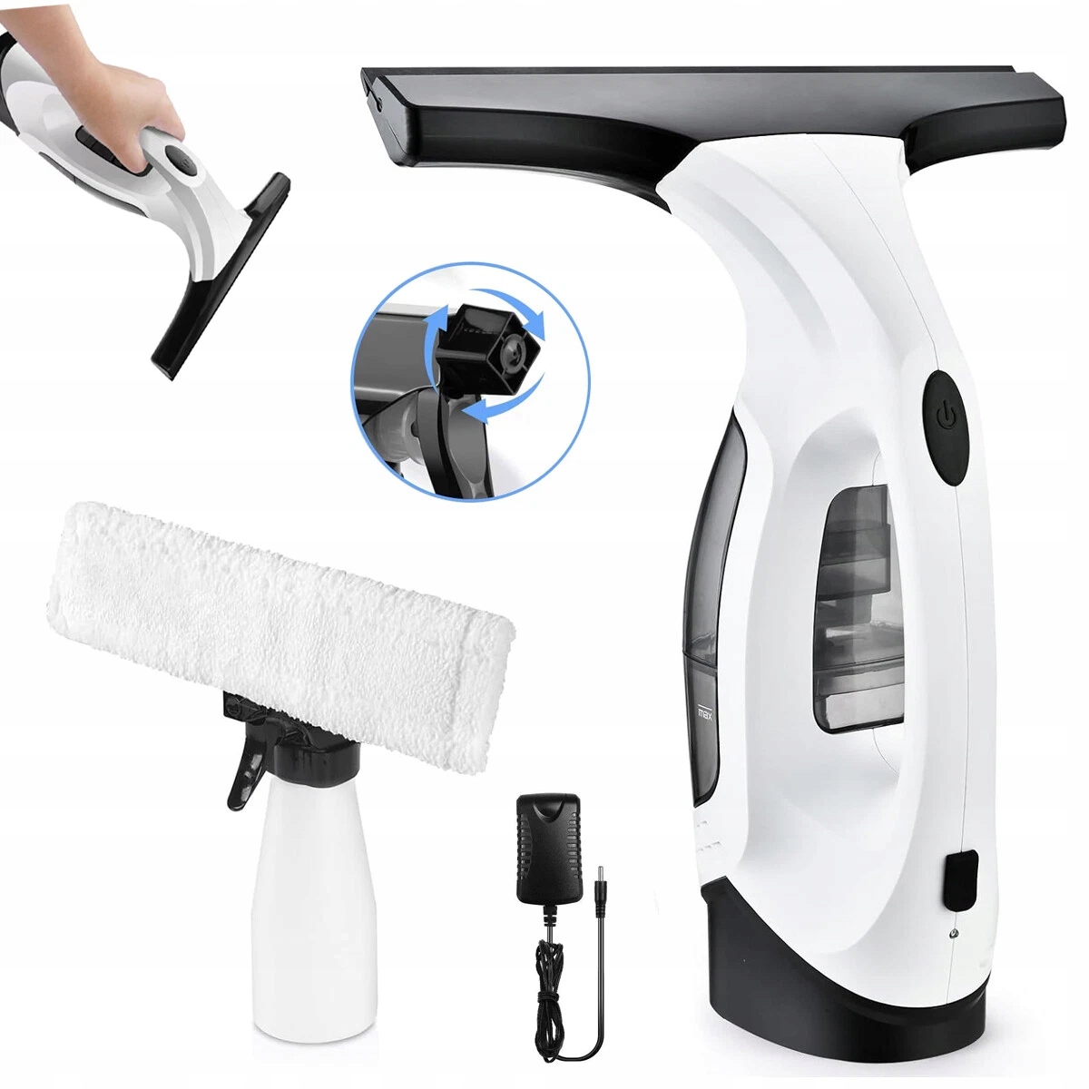 Пылесос для окон с аккумулятором, с насадками для протирки шириной 280 мм и резервуаром для воды на 150 мл,