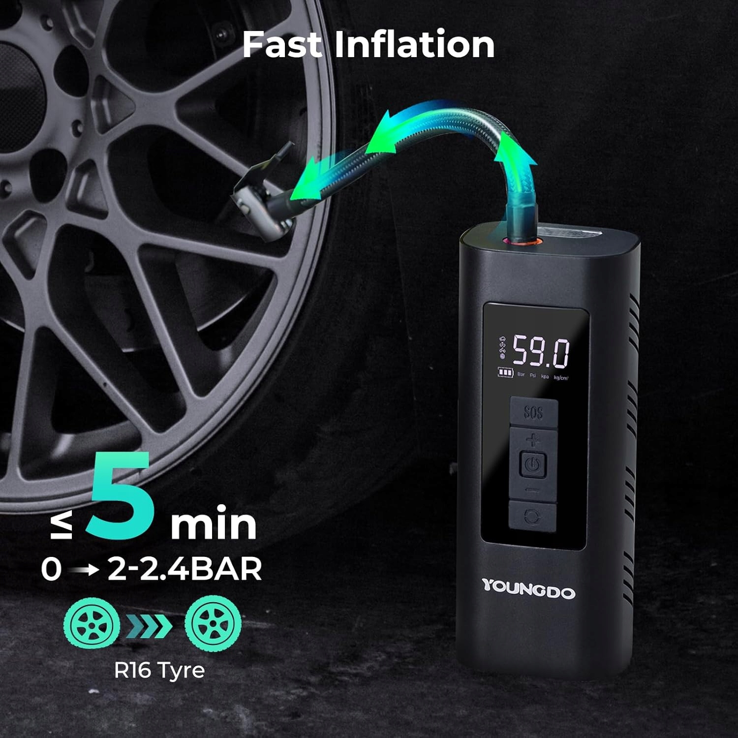 Вы также можете установить желаемое давление в шинах, и электрический воздушный насос автоматически отключится, как только будет достигнуто заданное значение.