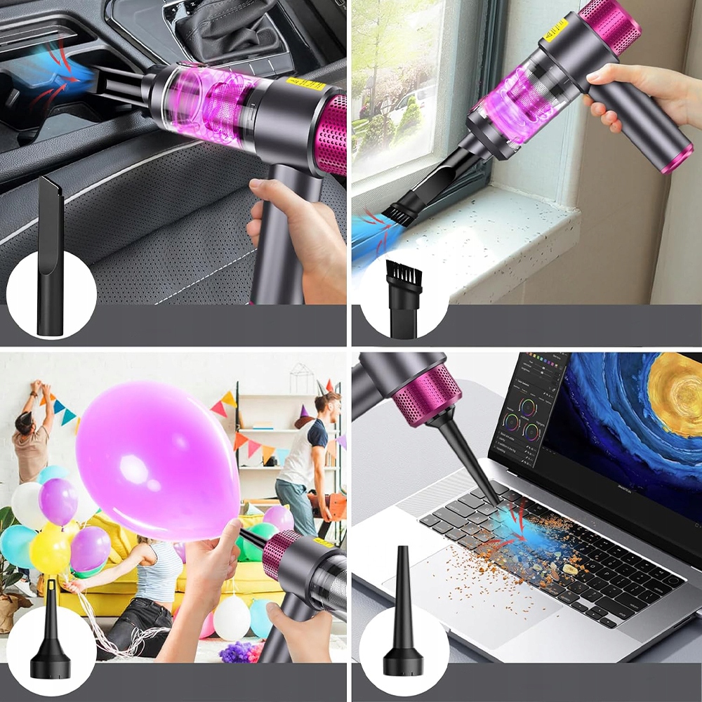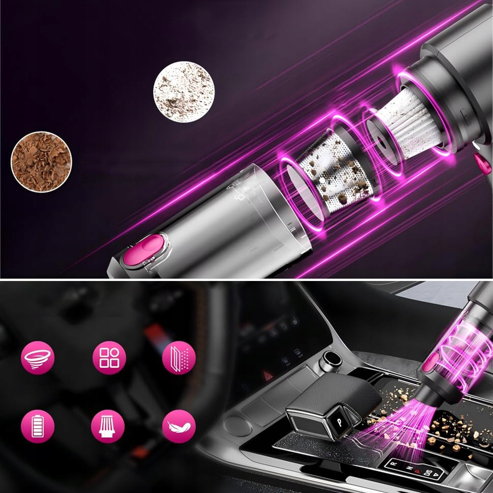 - - Очистить пылесборник можно одним щелчком мыши, а благодаря простой конструкции устройства очистка фильтров и контейнера происходит быстро и удобно. Более того, батарею можно подзарядить после того, как она иссякнет, что делает это экологическим и экономичным решением. Идеально подходит для удаления пыли, волос, остатков еды, листьев, опилок и другой грязи в автомобилях, на столах и в укромных уголках дома.