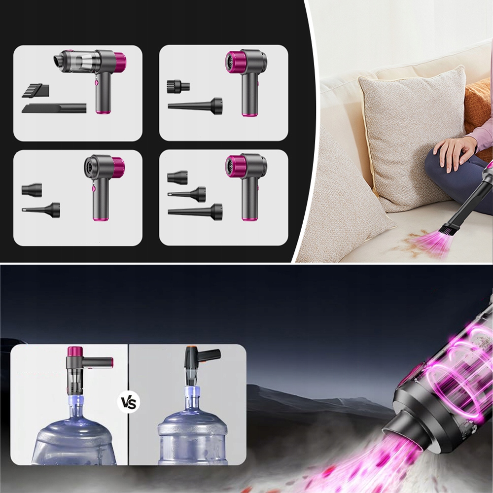 - – Этот беспроводной ручной пылесос с двигателем из медного сплава имеет инновационную конструкцию прямых воздушных каналов, которая снижает сопротивление воздуха на 80 %. Благодаря этому пылесос достигает впечатляющей мощности всасывания до 8000Па и скорости вращения до 36000об/мин. Уникальный функционал устройства позволяет легко переключаться между 4 режимами работы: всасывание, выдувание, откачка и вакуумное извлечение, адаптируясь к различным потребностям в уборке и обслуживании.