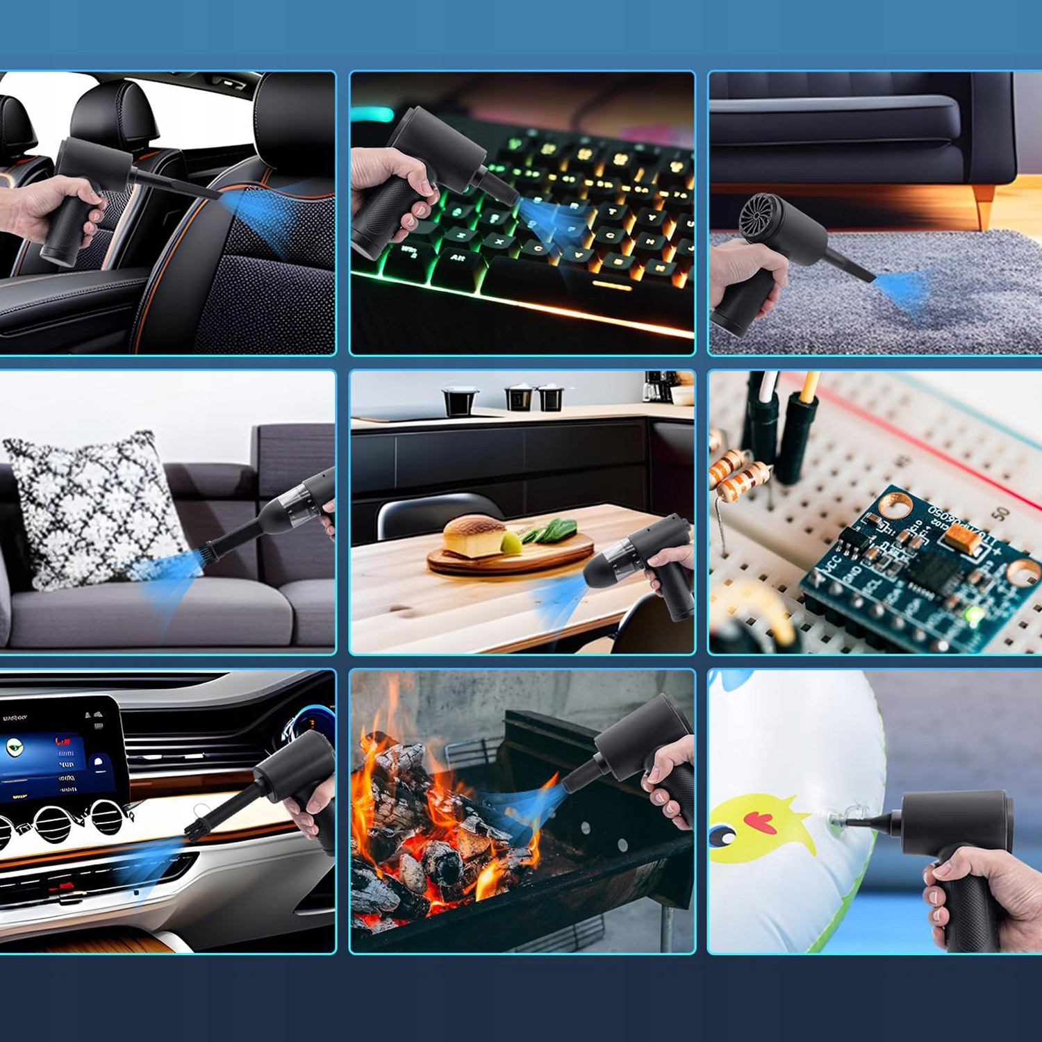 🍃Этот новый пылесос и воздуходувка 2-в-1 оснащен 6 различными съемными насадками и щетками. Насадки и щетки можно заменяется по мере необходимости, идеально подходит для очистки пыли, волос и грязи с диванов, ковров, столов, ноутбуков, клавиатур и т. д., удобен для использования в автомобиле, доме и офисе. С моющимся и многоразовым фильтром, который легко разбирать и чистить.