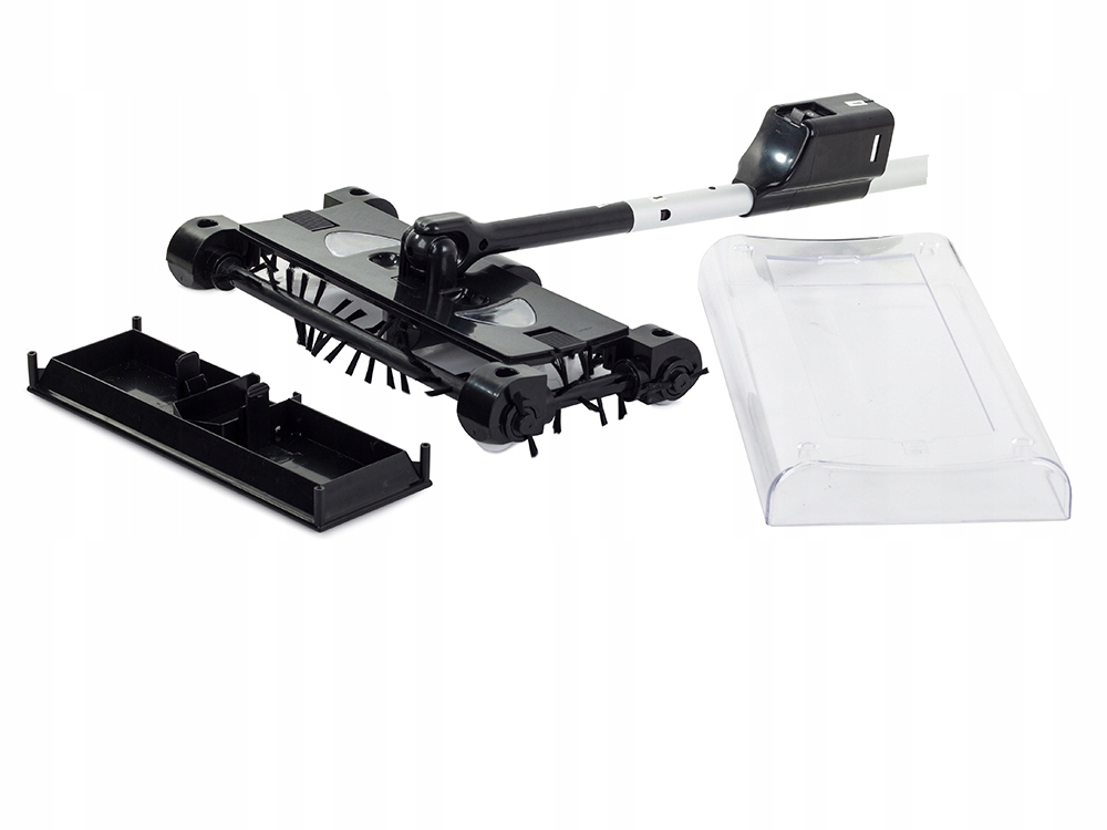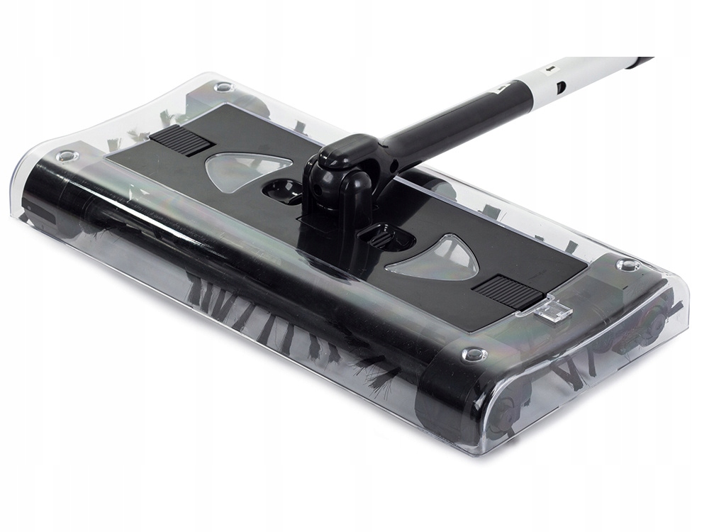 Корпус щетки настолько плоский, что его можно легко вставить под шкафы, кровати и т. д., а на ручке имеется шарнир, позволяющий свободно поворачивать его на 360 градусов. > Пыль и грязь собираются в контейнере, который легко опорожнить.