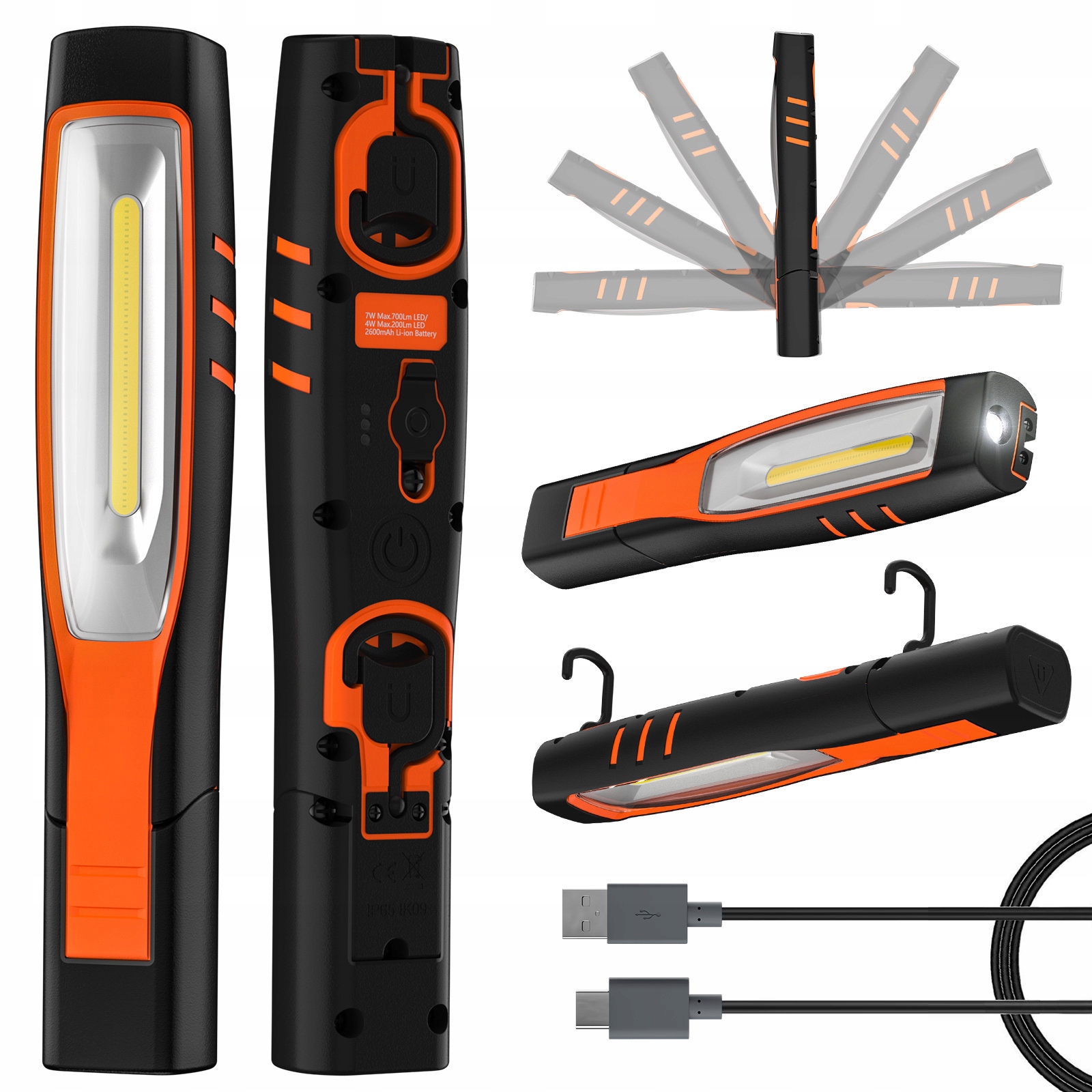 - Сверхсильные магниты сзади и снизу, которые можно прикрепить даже к любой вертикали стальная поверхность без скольжения и падения. Два крючка для подвешивания горизонтально и вертикально для использования в качестве рабочего фонаря под капотом.