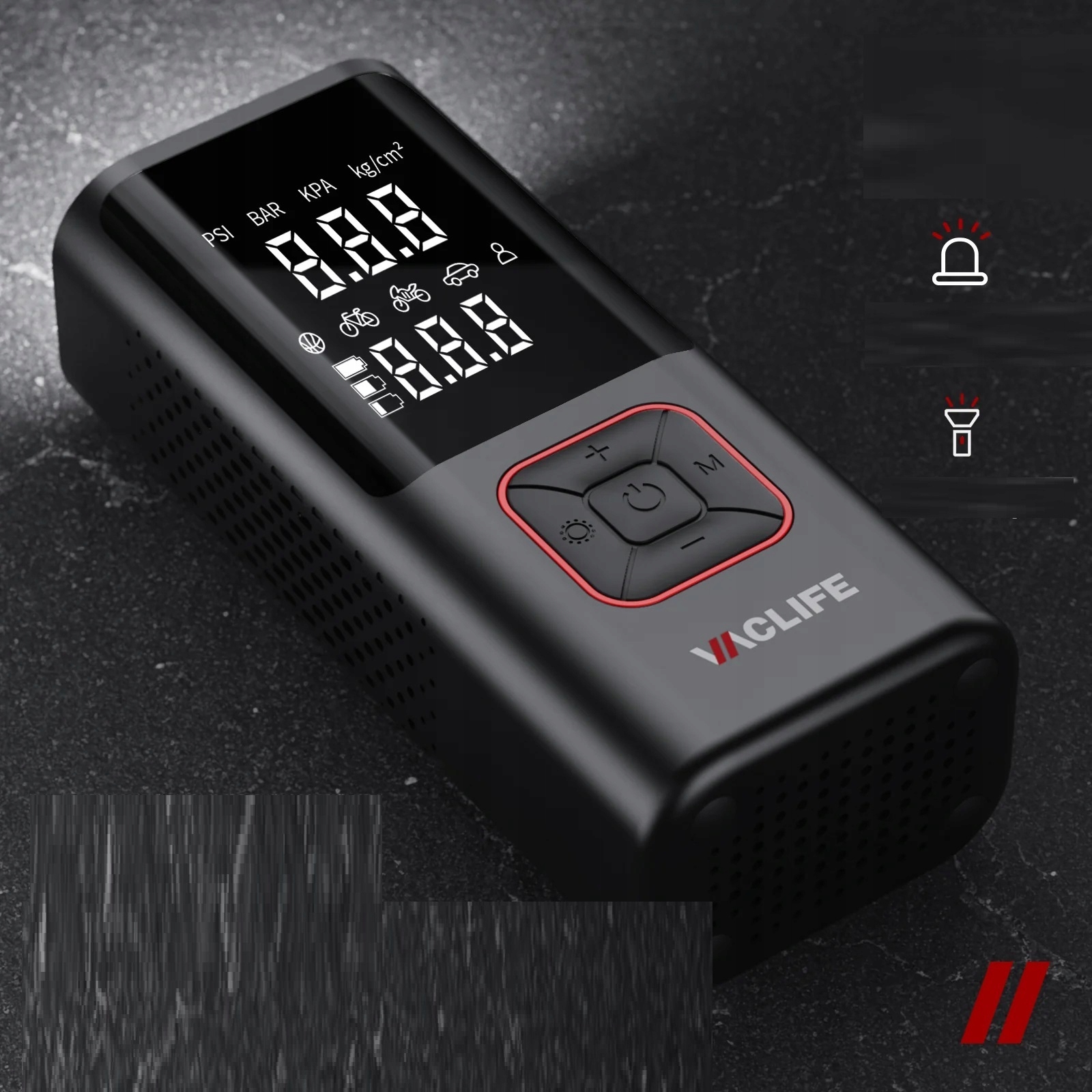Универсальность, это больше, чем просто автомобильный воздушный насос. В верхней части устройства для накачивания шин имеется светодиодная подсветка, что позволяет удобно накачивать и менять шины в темноте. Имеется 3 режима светодиодной подсветки для удобного использования в темноте: вспышка, сигнал тревоги и сигнал SOS. Автомобильный компрессор обязательно должен быть в вашем автомобиле!
