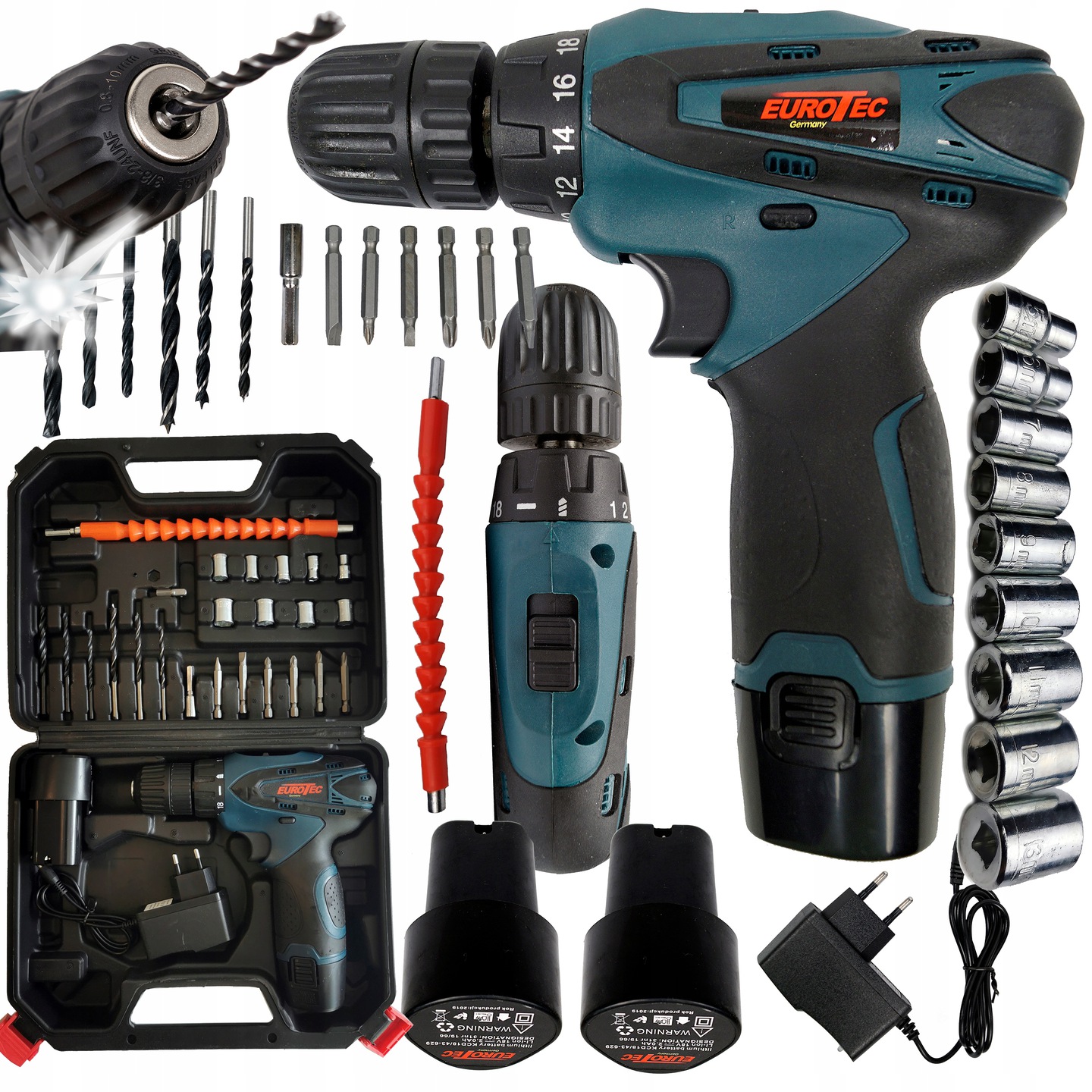 Дрель и отвертка Eurotec — это устройство универсального применения. Входящий в комплект большой набор сверл и бит позволяет вкручивать и снимать различные шурупы и болты, а также сверлить древесину, металл, пластик и керамику. Это незаменимый инструмент в каждой мастерской!