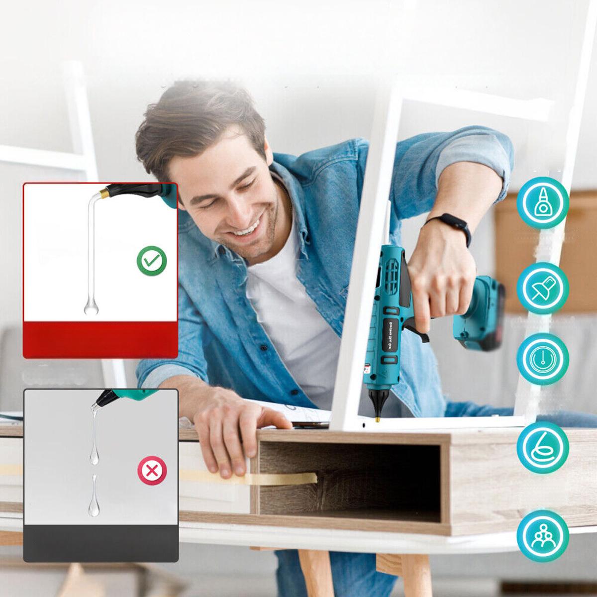 ✅Высокотемпературный клеевой пистолет с напряжением 18 В / 20 В и временем нагрева 3-5 минут при температуре 150°C — идеальный помощник для проектов DIY. Максимальная температура составляет 250°C. Технические характеристики клеевого стержня составляют Φ11 мм, а характеристики выхода клея — Φ3 мм. Благодаря скорости склеивания 12 г/мин он идеально подходит для быстрых и эффективных работ по склеиванию. Подходит для широкого спектра домашних работ. ✅