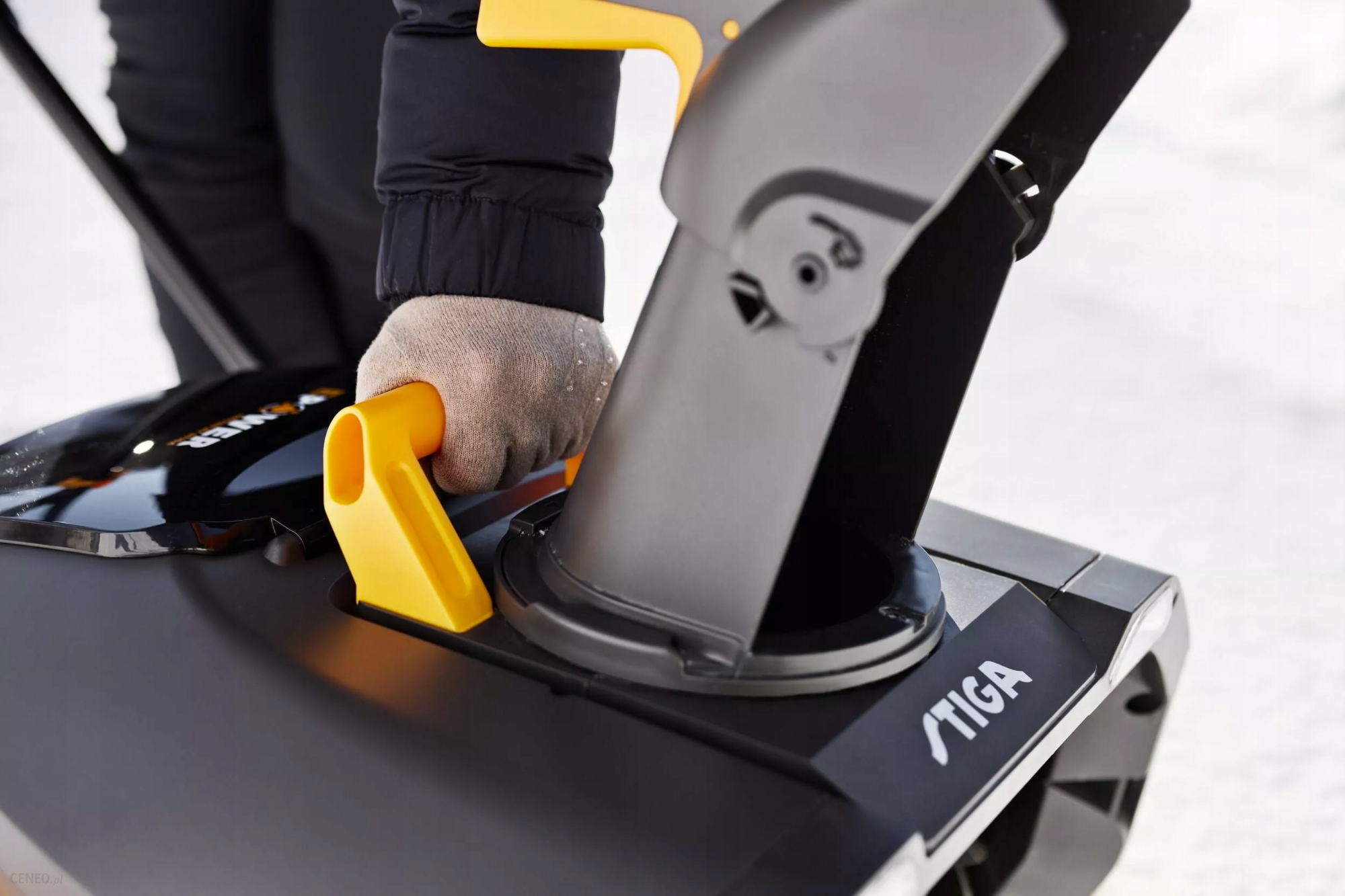 Снегоочиститель спроектирован с учетом удобства и оснащен ручкой для транспортировки, облегчающей переноску и установку.