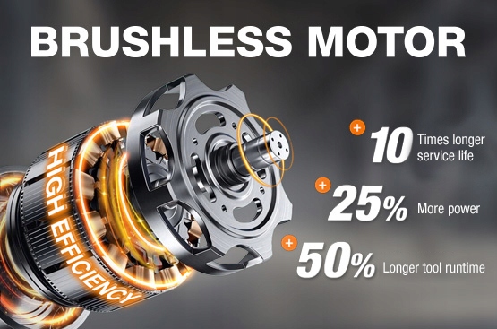 Бесщеточный двигатель обеспечивает высокую мощность при меньшем энергопотреблении, поэтому вы можете работать на 50 % дольше без подзарядки аккумулятора.