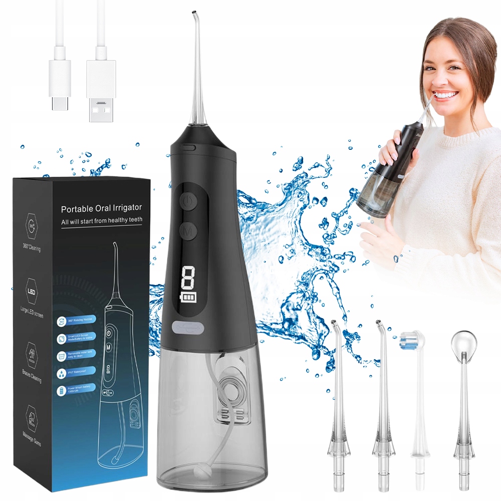 Беспроводной ирригатор для зубов, мощный, 9 режимов работы, 2 насадки