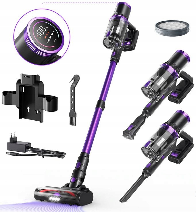 Аккумуляторный пылесос оснащен современным светодиодным цифровым дисплеем. Вы можете сразу проверить уровень заряда батареи, статус неисправности и уровень мощности всасывания. Дисплей позволяет легко и интуитивно контролировать уровень всасывания и другие настройки. Это делает эксплуатацию пылесоса еще более удобной и эффективной.
