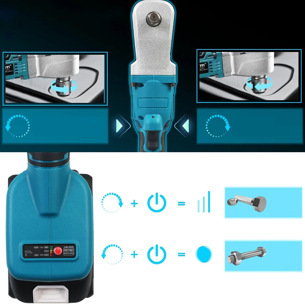 Вращение вправо или влево контролируется боковой ручкой. При обратном движении тормоз предотвращает соскальзывание гайки или болта после отвинчивания. Это обеспечивает точность и безопасность во время использования.