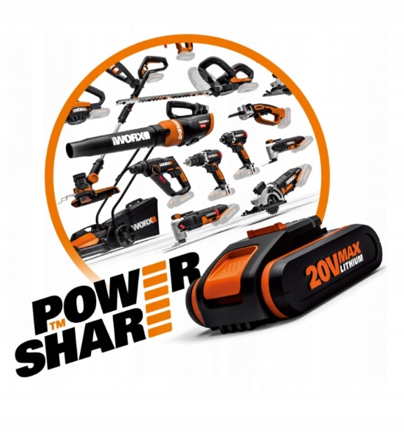 С WORX PowerShare вы можете использовать одну и ту же батарею для всех аккумуляторных электроинструментов и садовых инструментов WORX.
