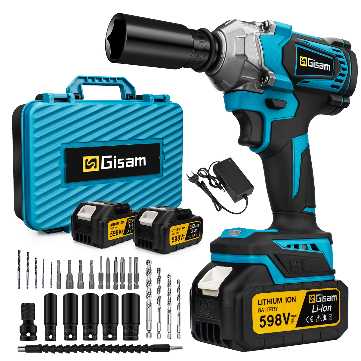 Аккумуляторный ударный гайковерт, бесщеточные головки, 2 аккумулятора, мощность 1200 Нм для колес
