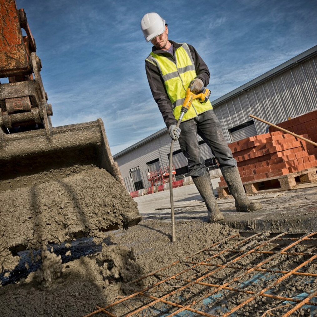 DeWALT DCE531N — профессиональный аккумуляторный строительный инструмент на 18 В для удаления воздуха из бетонных форм.