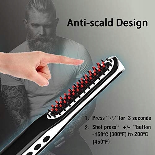 Усовершенствованная технология термической ионизации. Выпрямитель для бороды: улучшенное ионное кондиционирование в сочетании с антистатическим покрытием обеспечивает легкое скольжение по волосам на лице, меньше спутывания и вьющихся волос, а также быстрый и длительный результат. Легко выпрямить и расчесать за один шаг! Это также улучшит естественный блеск вашей бороды и волос, сохраняя здоровый и гладкий вид бороды и волос.