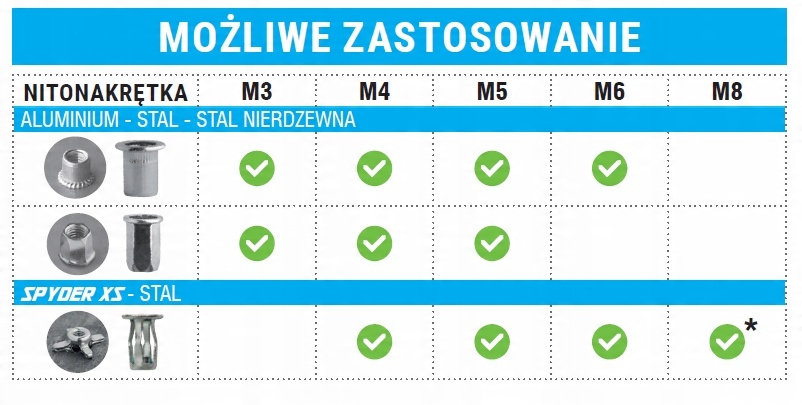 - 4 носика и штифты М3 - М4 - М5 - М6 для заклепок-гаек