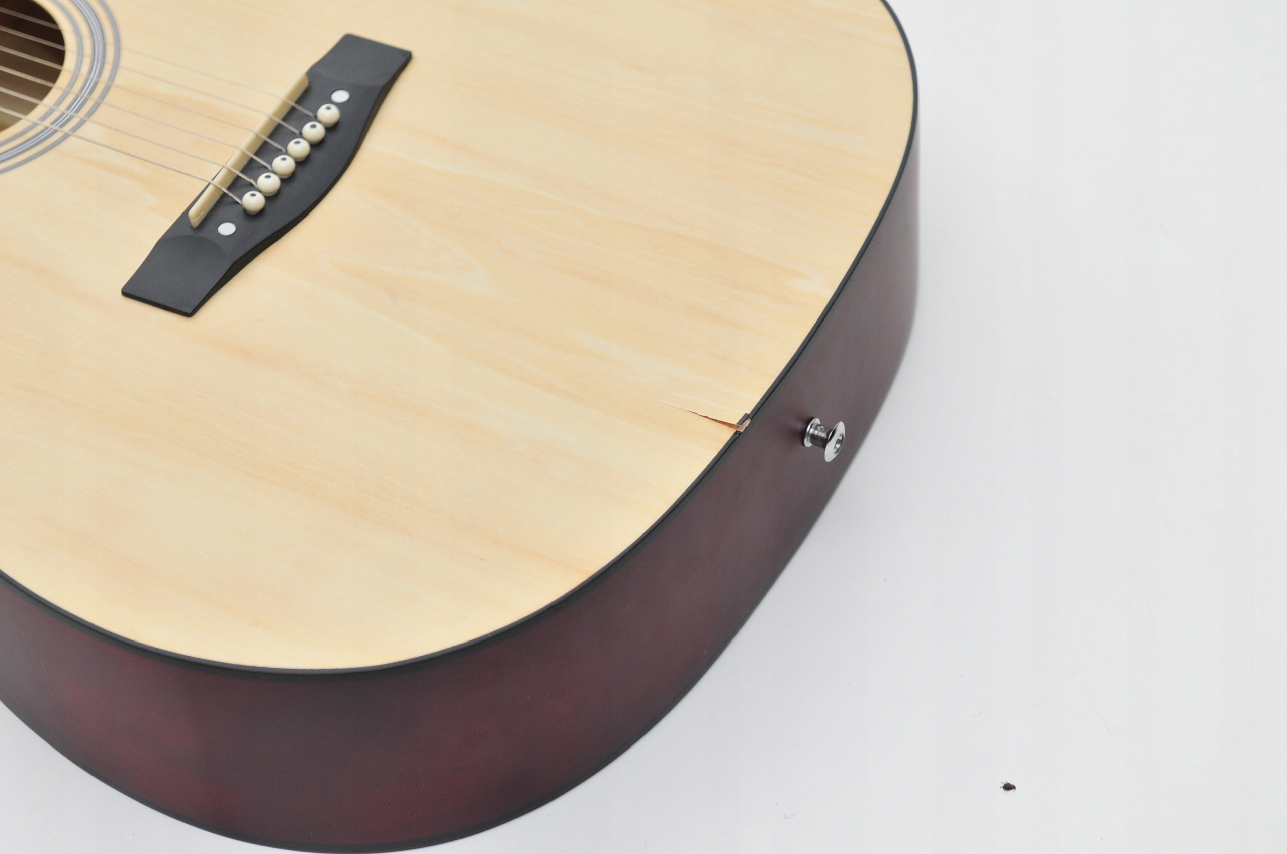 ГИТАРА С ДЕФЕКТОМ, КАК ПОКАЗАНО НА ФОТО — РАЗРЫВ ВЕРХНЕЙ ПЛАСТИНЫ. ДЕФЕКТ НИКАК НЕ ВЛИЯЕТ НА "ИГРАВНОСТЬ" И ЗВУЧАНИЕ ИНСТРУМЕНТА.