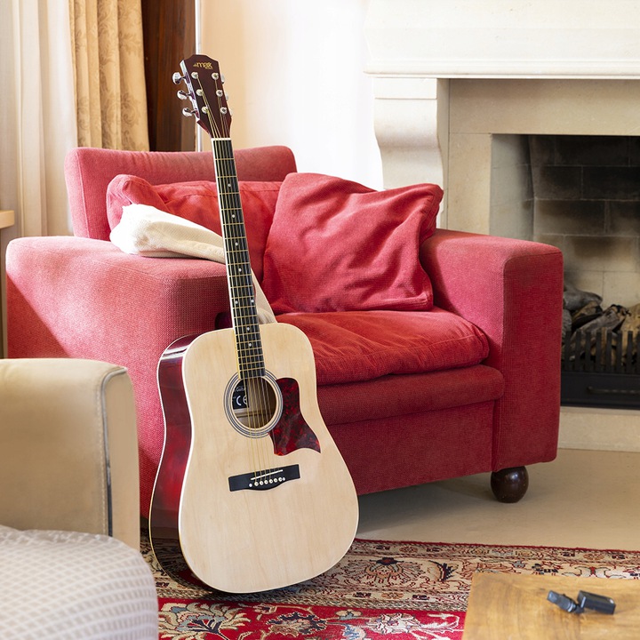 Эта акустическая гитара идеально подходит для всех, кто хочет начать играть на гитаре или решает вернуться в игру, но не хочет тратить целое состояние (фантастическое сочетание качество и цена). Инструмент полноразмерный, имеет стальные струны. Корпус выполнен в классическом стиле дредноут, обеспечивая потрясающий звук в сочетании с западным внешним видом. Эта модель подойдет людям всех возрастов. Благодаря всем необходимым аксессуарам, входящим в комплект, вы можете сразу начать свое музыкальное приключение.