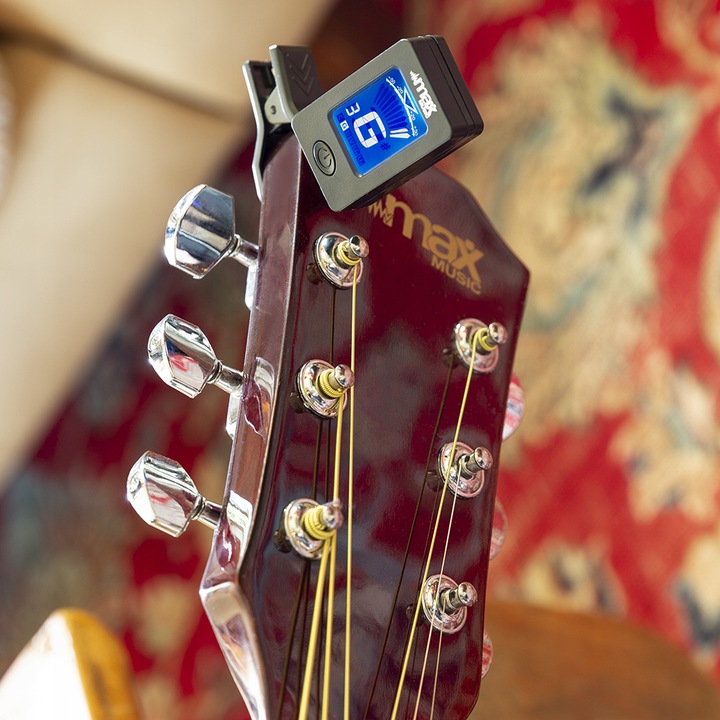 В начале вашего приключения может быть сложно настроить гитару на слух, но входящий в комплект цифровой тюнер пригодится.