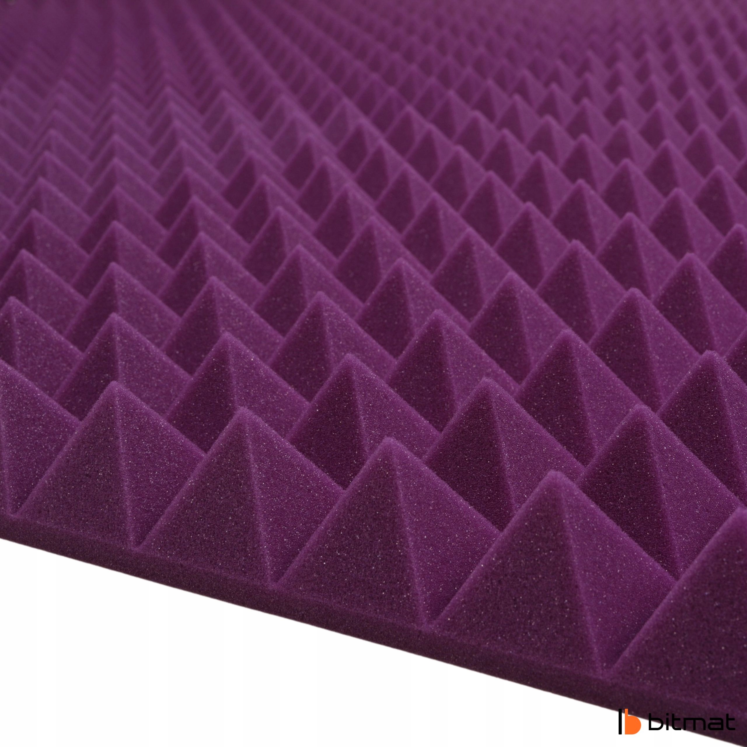 Акустическая пирамидальная пена Bitmat, также называемая акустической панелью, изготовлена из вспененного полиуретана и имеет структуру с открытыми ячейками. Использование соответствующих диффузоров идеально подходит для студий и музыкальных комнат/голосовых кабин, поскольку улучшает разборчивость речи и вокала. Это оптимальное приложение, которое при относительно небольших затратах позволяет предотвращать реверберации, улучшает качество звука в жилых и рабочих помещениях, а также создает современный дизайн.