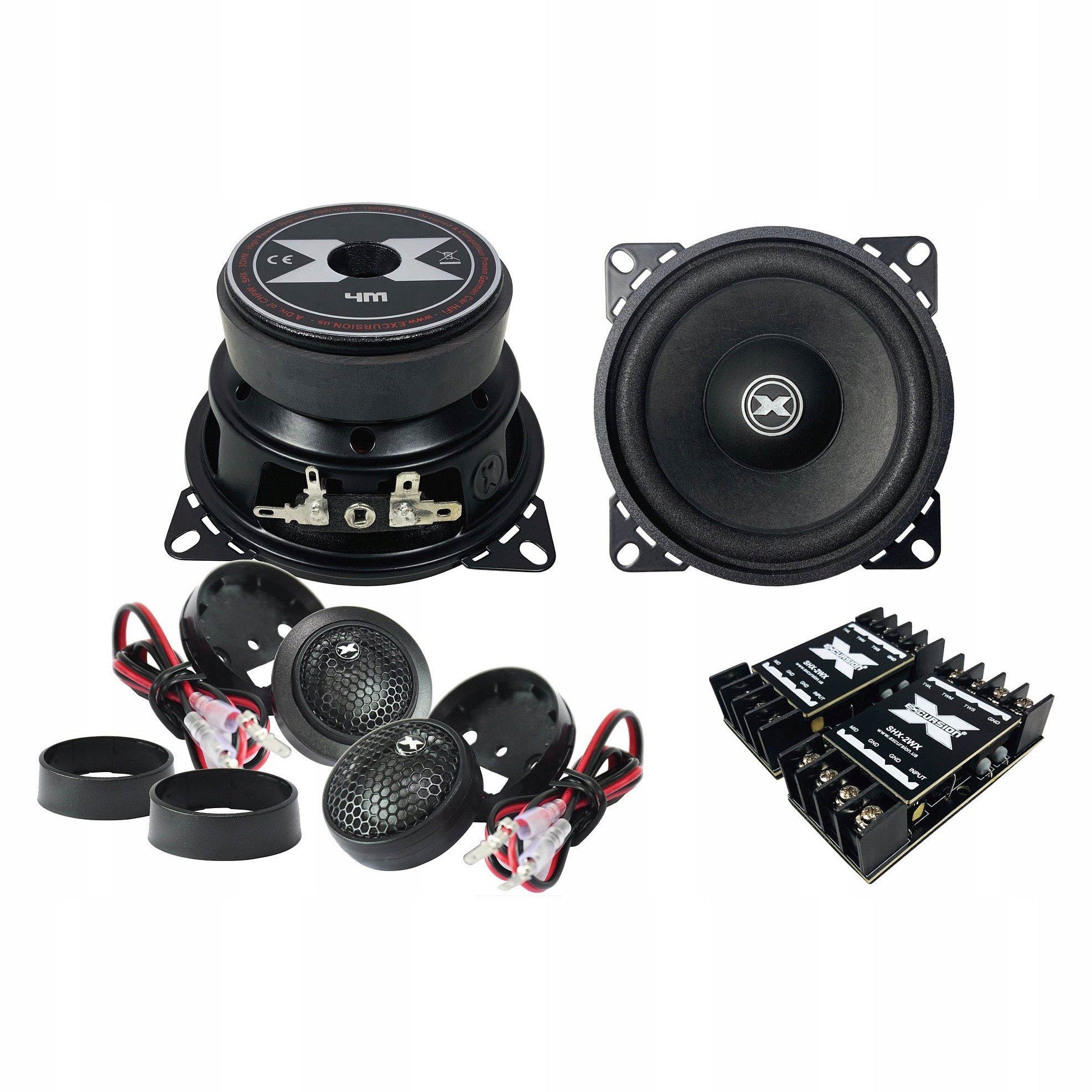 Комплект автомобильных 2-полосных динамиков: 2 низкочастотных динамика 100 мм, 2 высокочастотных динамика 20 мм, 2 кроссовера - 3 Ом, 60/ 150 Вт, 90 дБ, 60–20 000 Гц, глубина 54 мм.