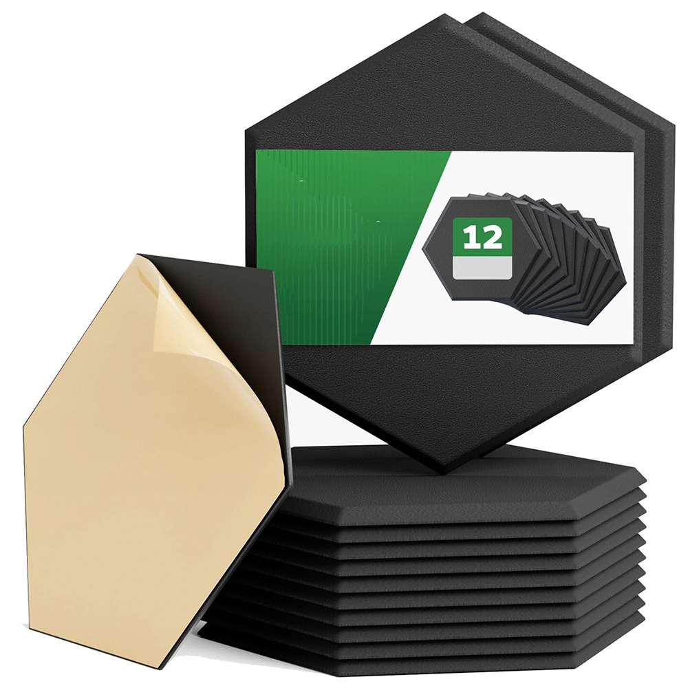 ⏩ Самоадгезивные шестиугольные акустические панели, 12 штук, полиэфирные акустические панели для звукоизоляции, 30 x 26 x 1 см. Поглотитель звука, звукоизоляция стен, потолки, дверь, исследования, черные