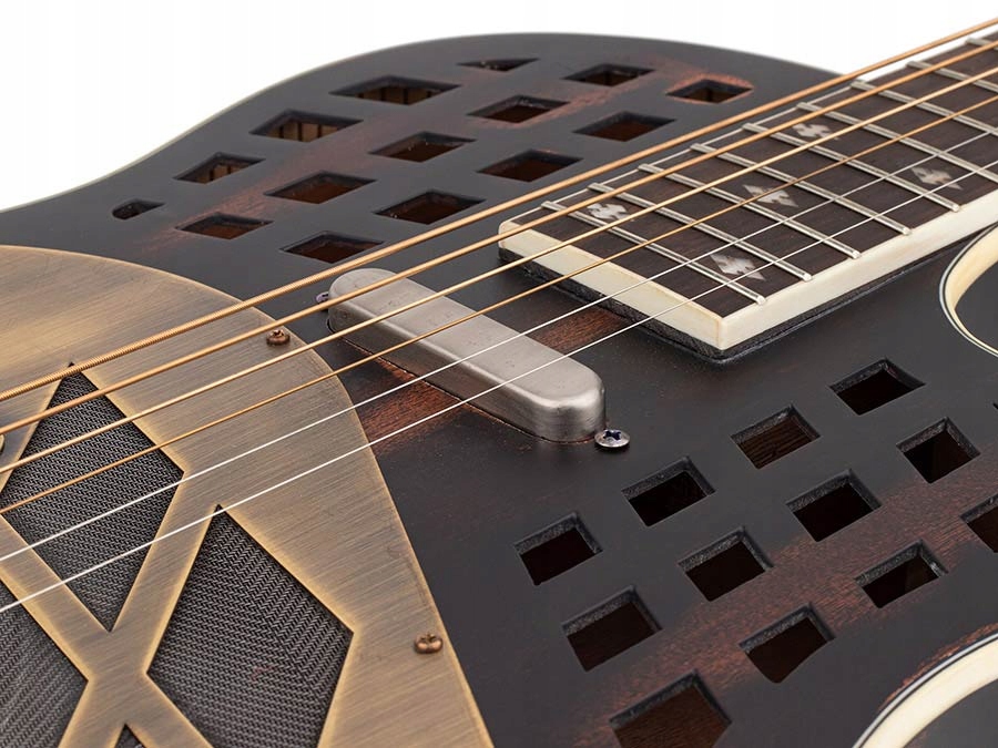 Эта гитара — настоящая находка для музыкантов, которые хотят выделиться в мире блюза, джаза или фолка. Оснащенный тремя 6-дюймовыми алюминиевыми резонаторами ручной обработки и прочным алюминиевым Т-образным мостом, он обеспечивает исключительно богатый, резонансный звук. Благодаря такому сочетанию каждый звук звучит глубоко и выразительно, предлагая полный спектр тонов от нежного до мощного, насыщенного баса.
