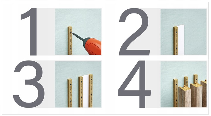 Верх и низ планок не проклеены, однако в нашем предложении есть шпонированные торцы различных цветов, которые соответствуют функция маскировки для этих просто элементов. Шпона тоже нет на обратной стороне планки – это место, незаметное глазу. После установки реек на стену остается фрезерованное углубление для клея.