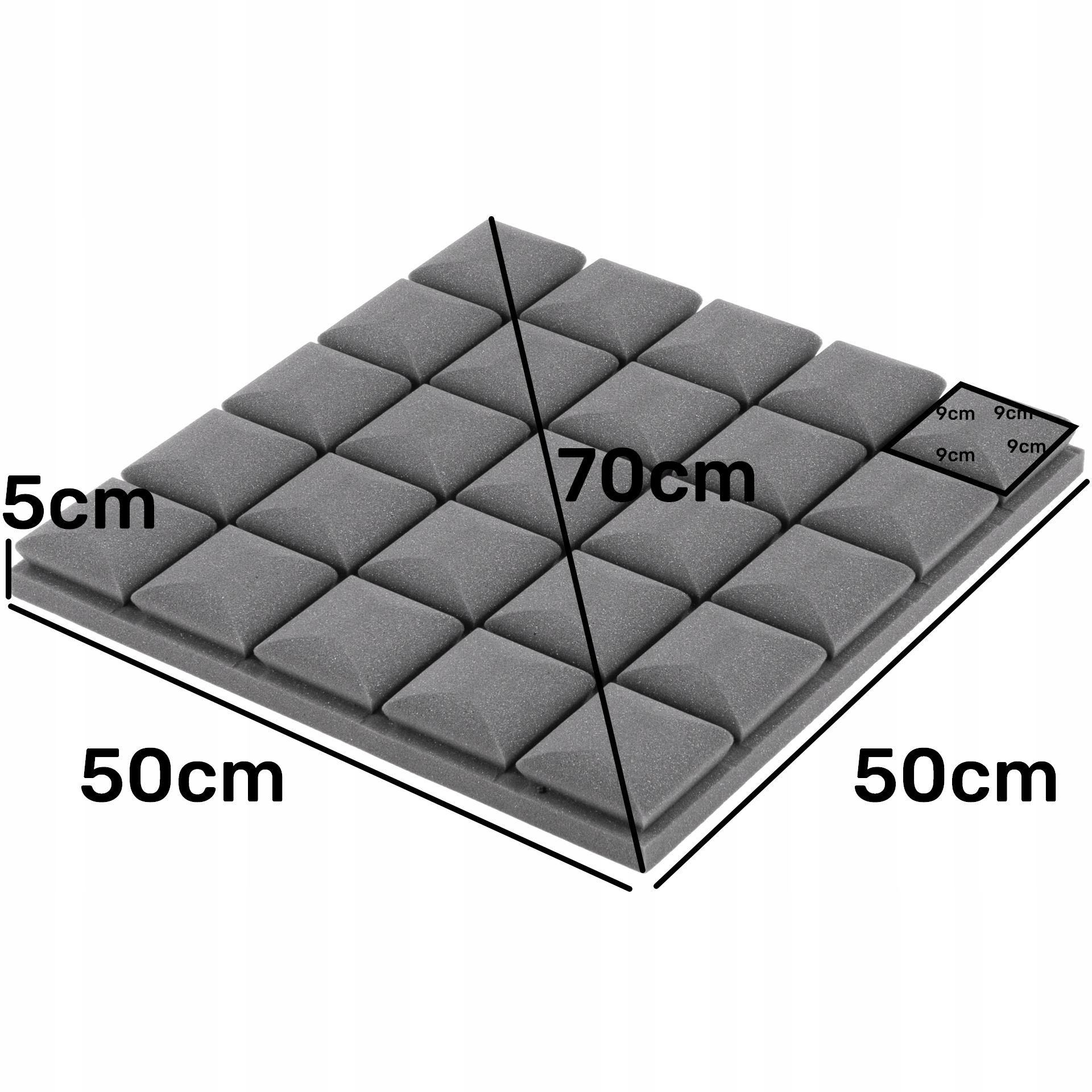 8x акустическая панель выпуклый куб без клея, размеры 50 см х 50 см, толщина 5 см, серая (графит)