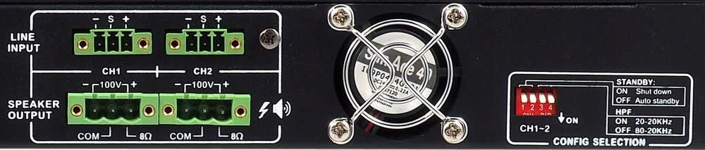 Эффективный двухканальный цифровой усилитель с источником питания 100 В или с низким содержанием 8ohm. Он предназначен для стойки 19 "с высотой 1U. Он содержит отдельную регулировку объема для каждого канала. Он имеет встроенную защиту от перегрузки, короткого замыкания, постоянного тока, тепловой защиты и защиты от пробуждающего входного сигнала.