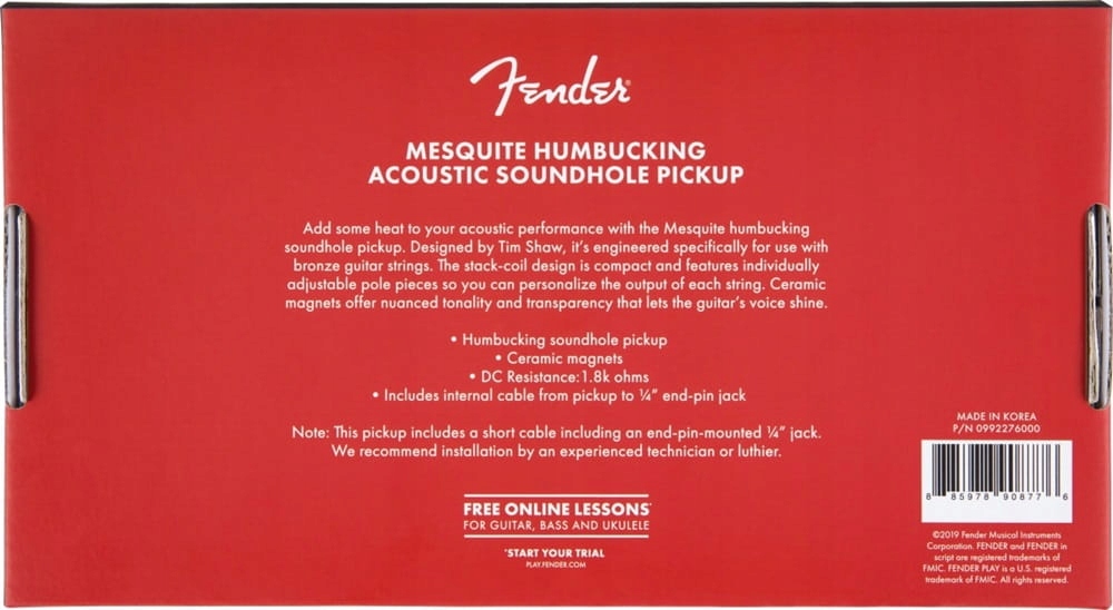 Просматривая «Акустичний пікап Fender 0992276000 Mesquite HB», вы можете быть уверены, что данный товар из каталога «Преобразователи» будет доставлен из Польши и проверен на целостность. В цене товара, указанной на сайте, учтена доставка из Польши. Внимание!!! Товары для Евросоюза, согласно законодательству стран Евросоюза, могут отличаться упаковкой или наполнением.