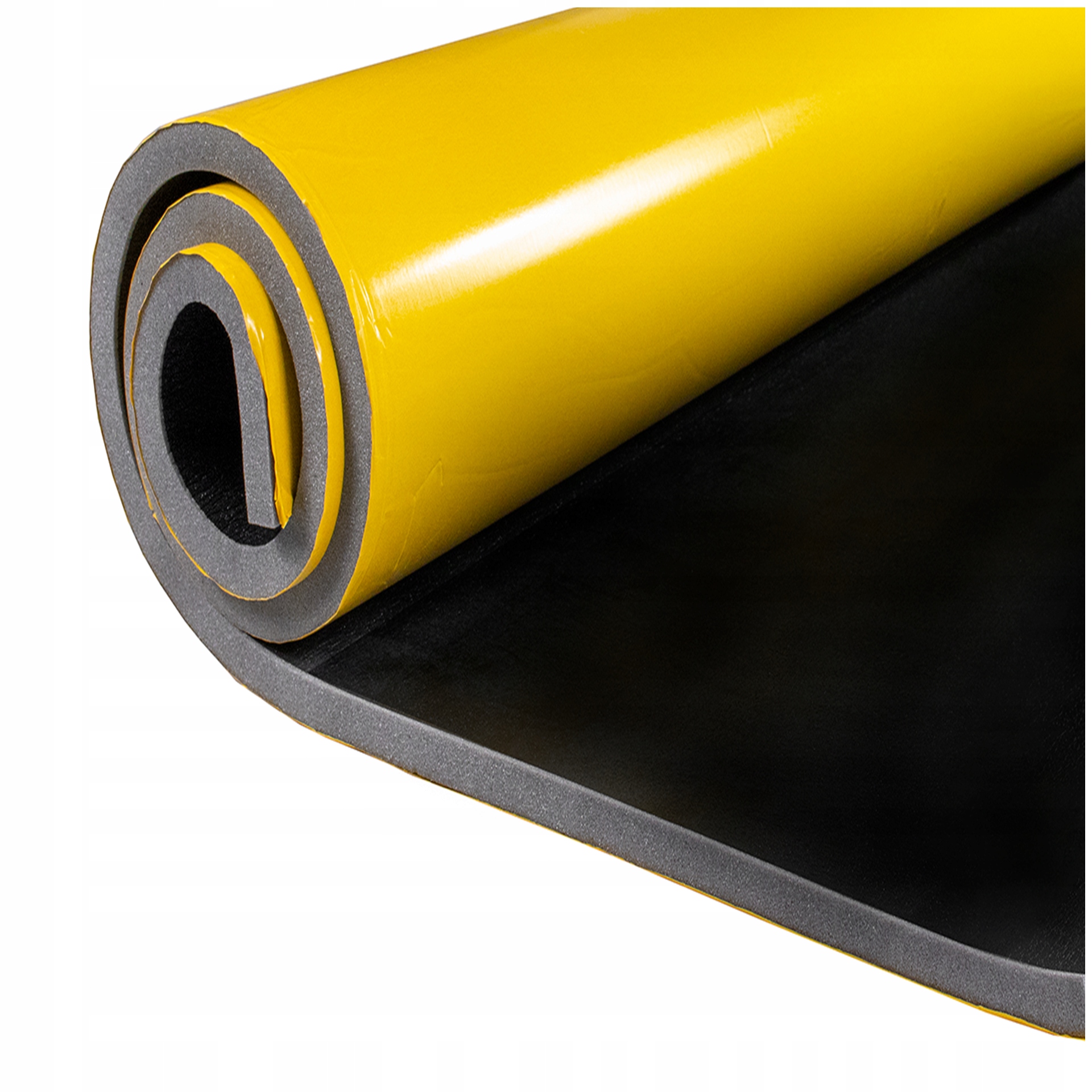 Самоклеящаяся шумоизоляционная пена со слоем черной фольги, устойчивая к воздействию масла, бензина и воды.