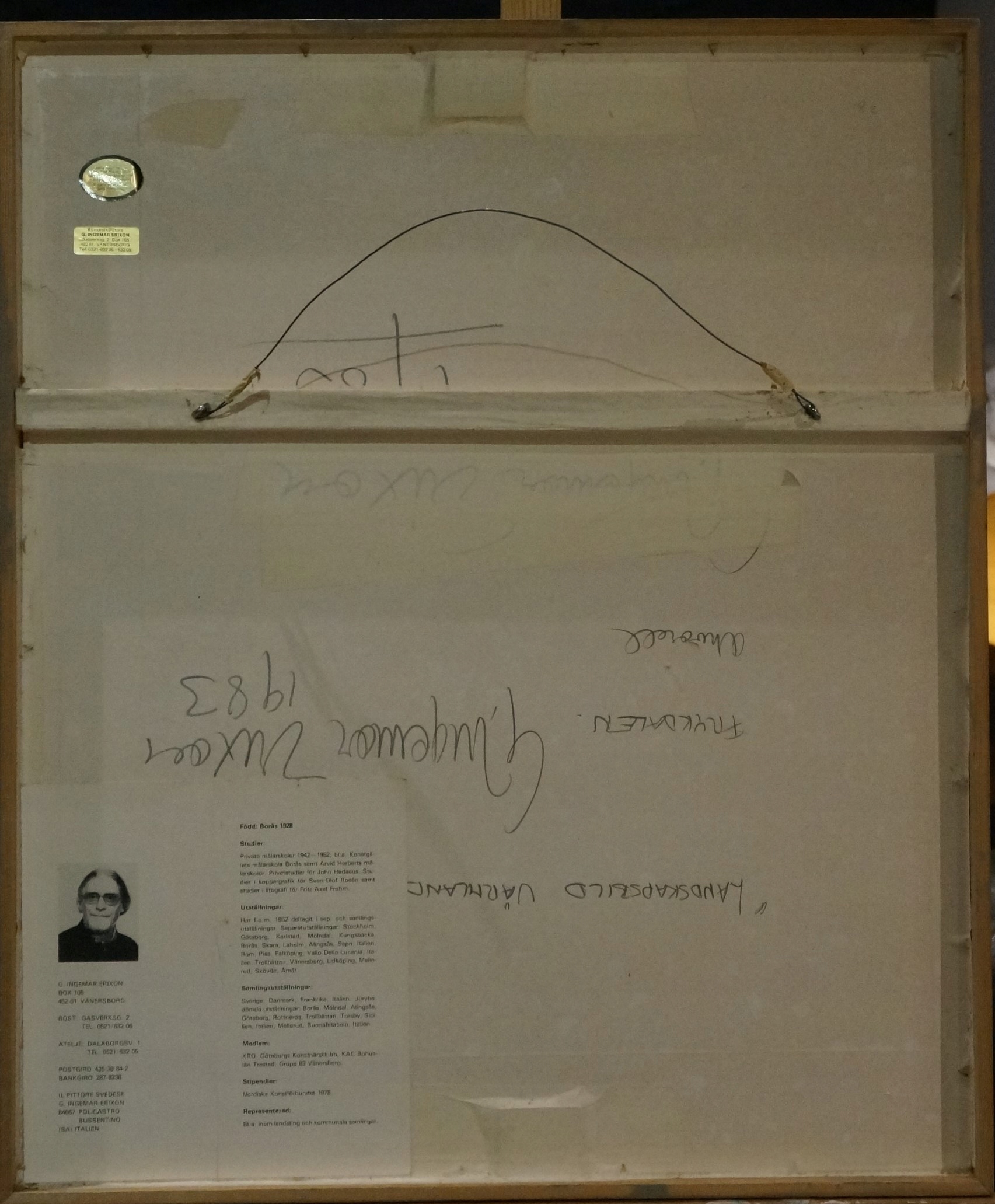 У меня есть акварель Гуннара Ингемара Эриксона, род. 1928-2008. Эриксон изучал искусство в различных частных школах живописи с 1942 по 1952 год. Дебютировал на выставке в 1952 году, затем принял участие во многих индивидуальных и групповых выставках в Швеции и за рубежом. В рамке, под стеклом рекомендую!!!