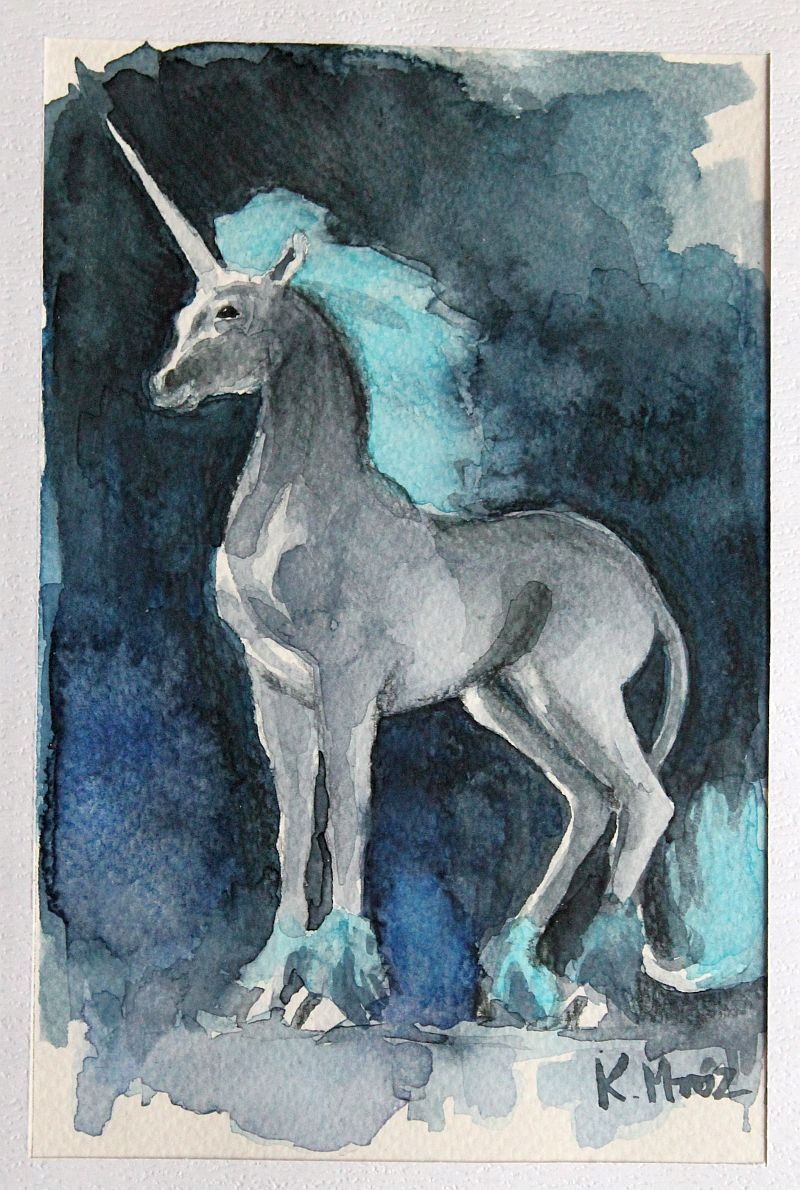акварель ЕДИНОРОГ единорог фэнтези А4