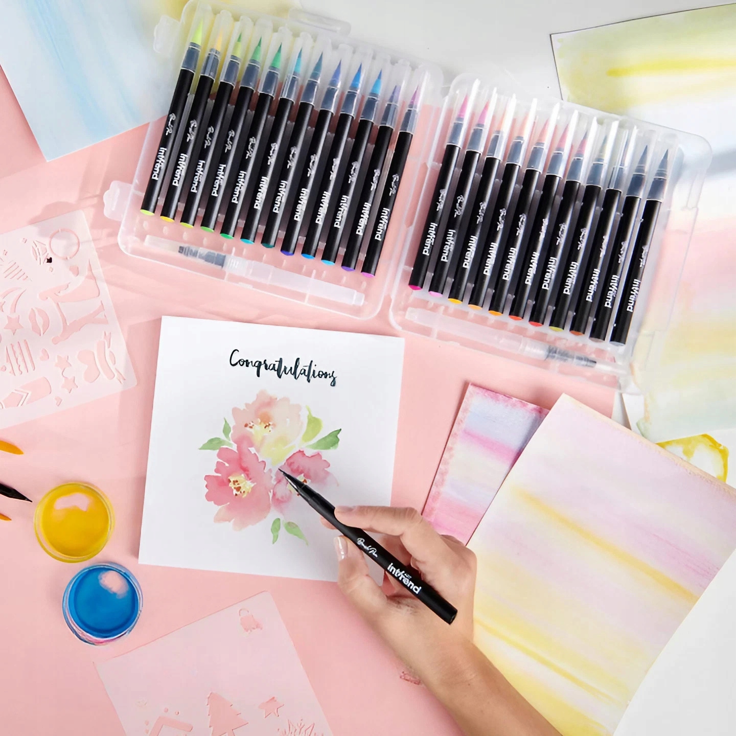 ✒️ Расширенные акварельные эффекты: ручки-кисти позволяют создавать акварельные эффекты путем смешивания цветов и использования двух резервуаров для воды.