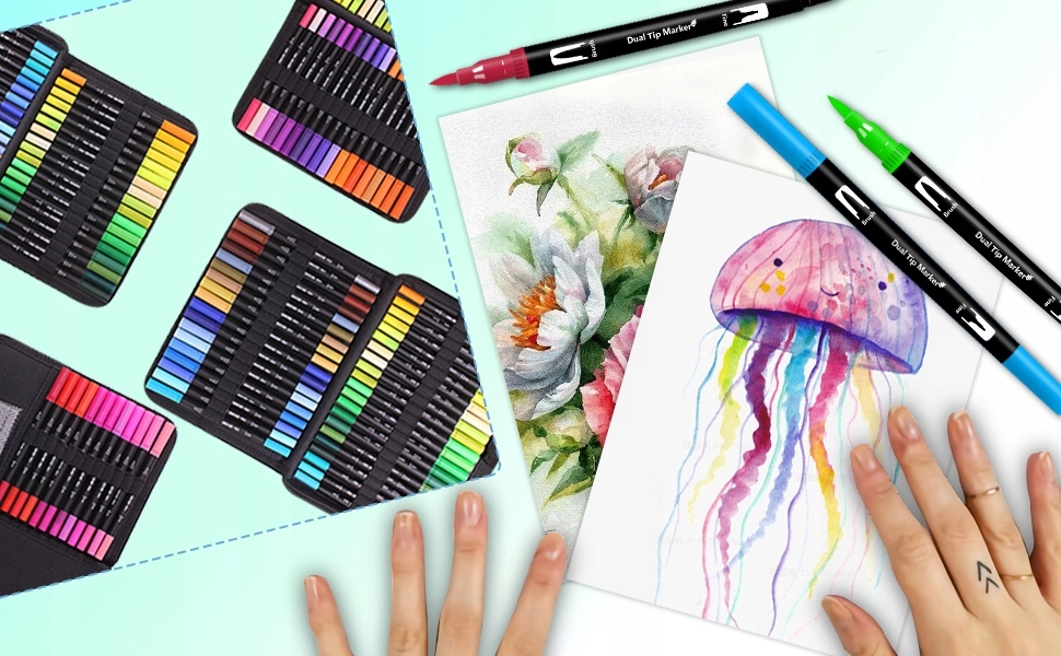 - ✔ 【Двойные кончики】: с помощью тонкого наконечника и гибкого наконечника. Совет кисти (0,4 мм) для контурирования и детализации и наконечник кисти (1-2 мм) для затенения и живописи обеспечивает высокую универсальность и гибкость. Двойной набор маркеров, легко создавать разные стили и чувство очарования искусства.