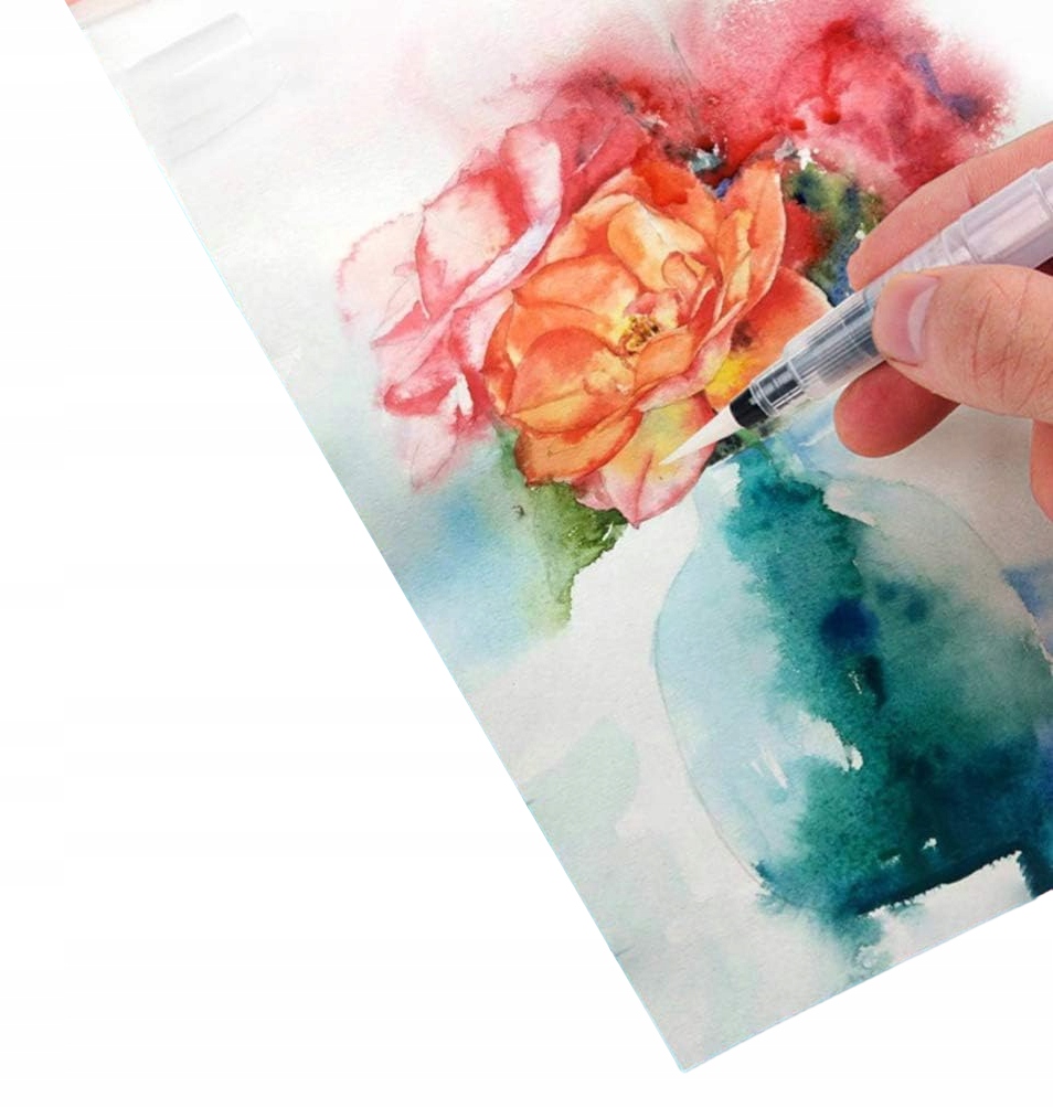 Входящая в набор водяная кисть с резервуаром для воды — это настоящая революция в мире акварельного рисунка. С его помощью вам не придется беспокоиться о емкостях с водой — просто наполните кисть, и все готово!!