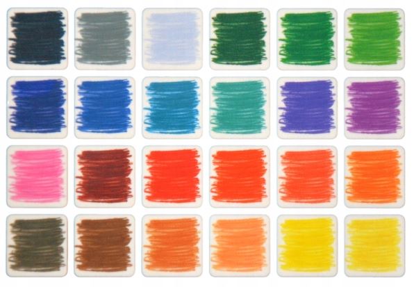 В набор входят 24 мелка красивых ярких цветов и кисть-аквакисть, которая придаст нотку новаторства вашим рисункам и стимулирует ваше творчество. Мелки упакованы в металлическую упаковку, которая облегчает их хранение и переноску и защищает от повреждений.