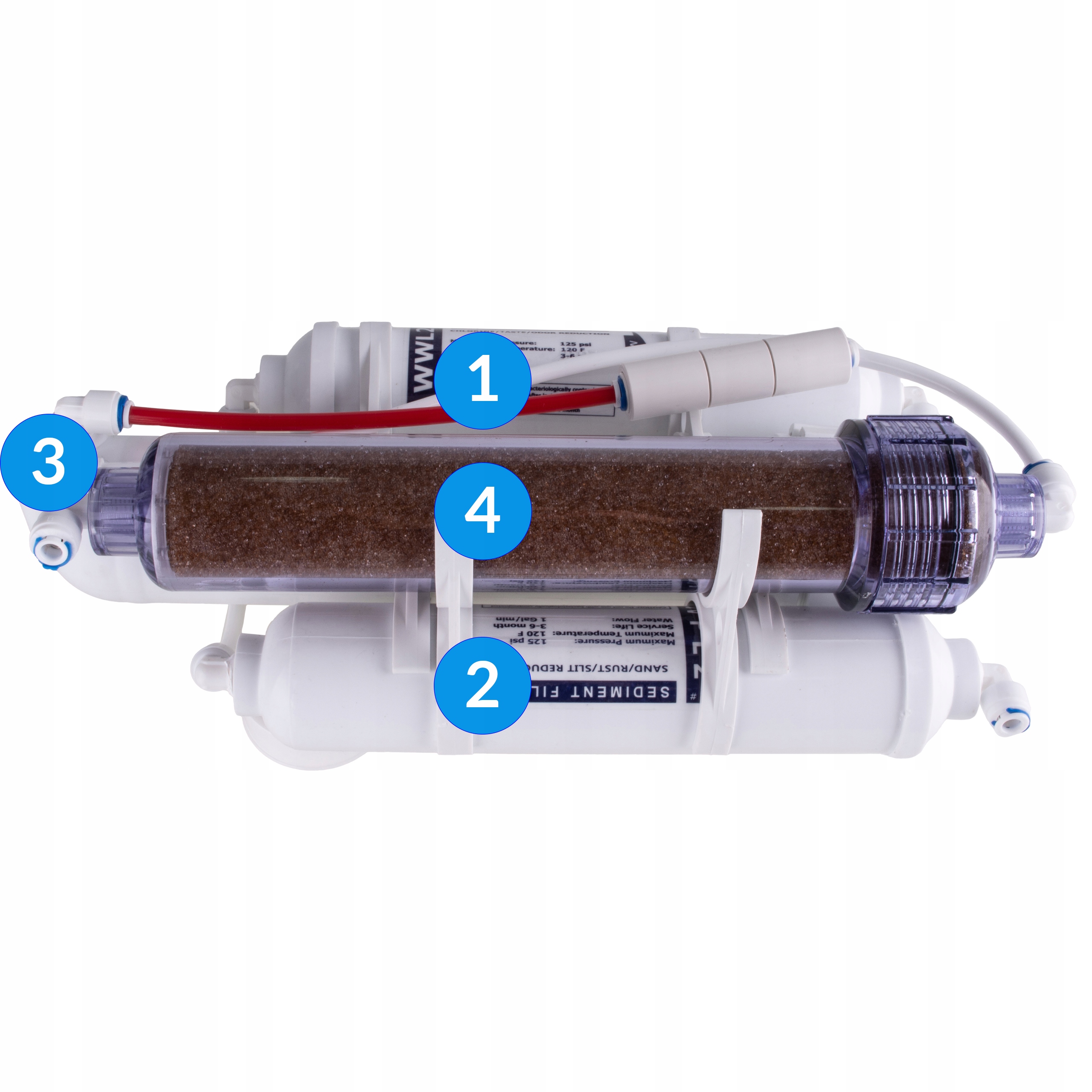 2. WWL2 - Угольные линейные картриджи удаляют из воды твердые загрязняющие вещества, такие как хлор, соединения хлора, органические загрязнители. (заменяется максимум каждые 6 месяцев)
