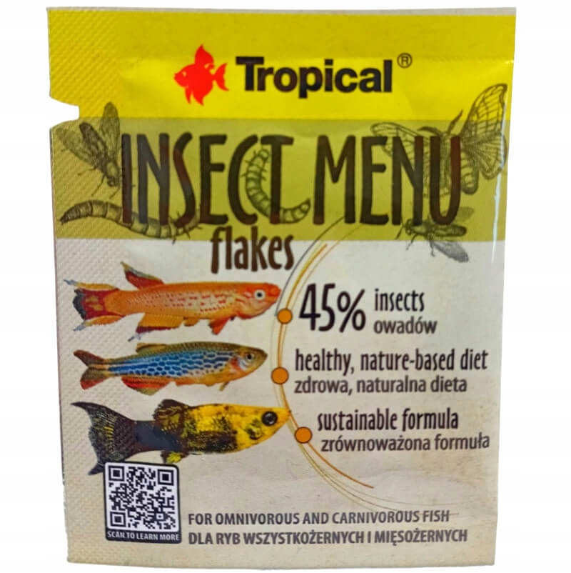 Многокомпонентный корм на основе насекомых. Предназначен для всеядных и плотоядных аквариумных рыб. Имеет форму лепестков. Содержит герметию, тутового шелкопряда и мучного червя. Усиливает рост и регулирует пищеварение.
