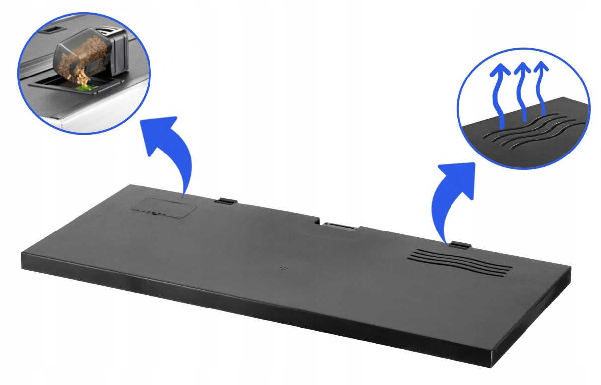Крышка аквариума имеет практичную дверцу, позволяющую вставить автоматическую кормушку или ручное кормление, не открывая крышку. В крышке также имеются специальные отверстия, обеспечивающие эффективную вентиляцию, которая ограничивает конденсацию воды и тем самым продлевает срок службы лампы.