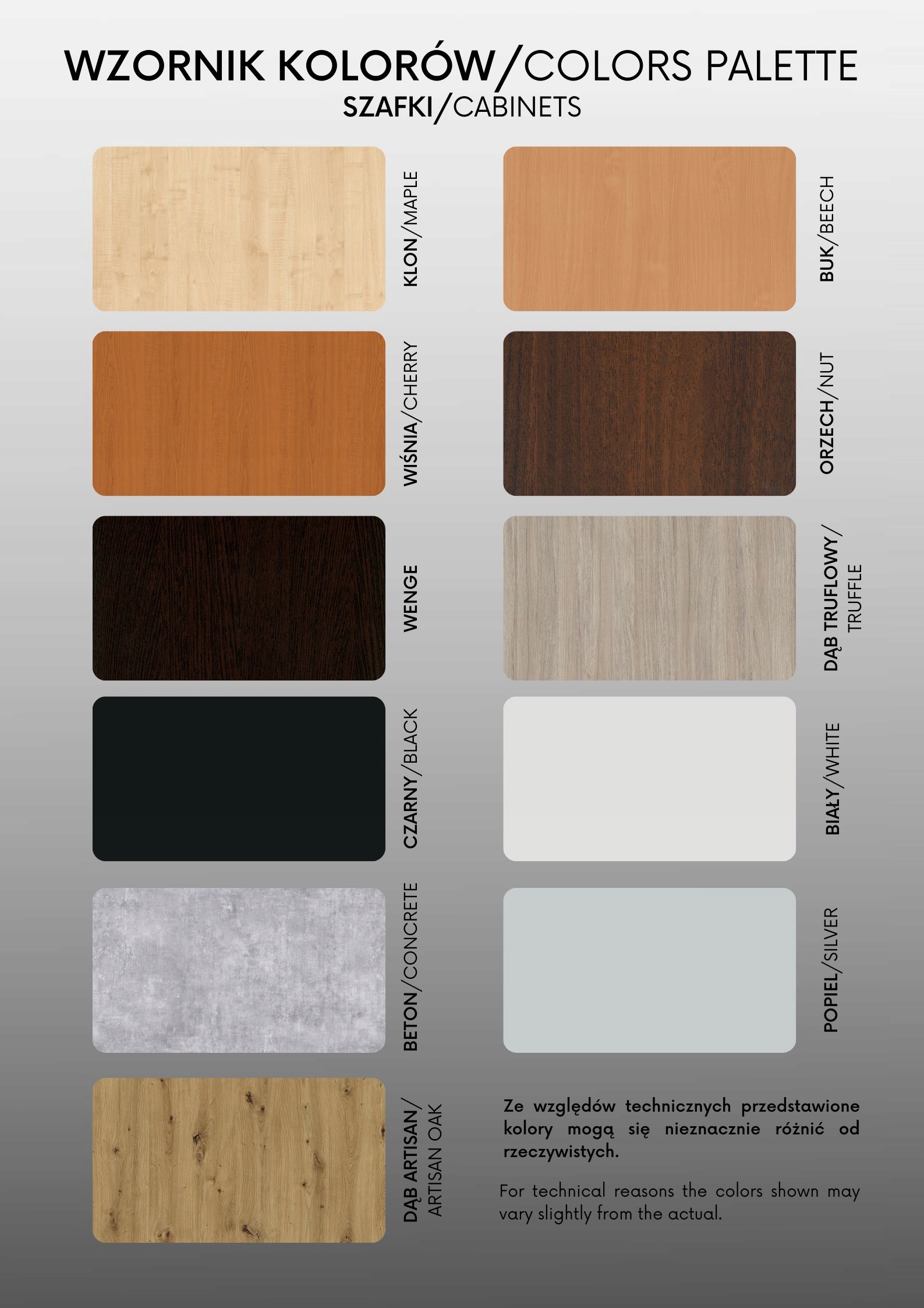 Шкафы доступны в следующих цветовых вариантах.