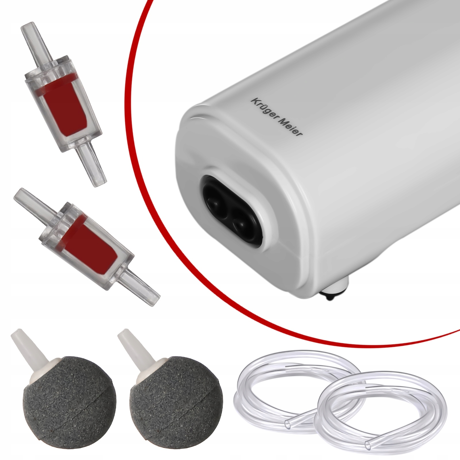 Двойной набор - аквариумный аэратор от проверенного бренда Kruger Meier. Это полный комплект двойной аэрации для любого аквариума объемом от 50 до 120 л. В коробке находится воздушный насос, 2 шланга, 2 обратных клапана и 2 воздушных камня. Воздушный насос очень тихий и энергосберегающий, а также имеет регулируемую производительность.
