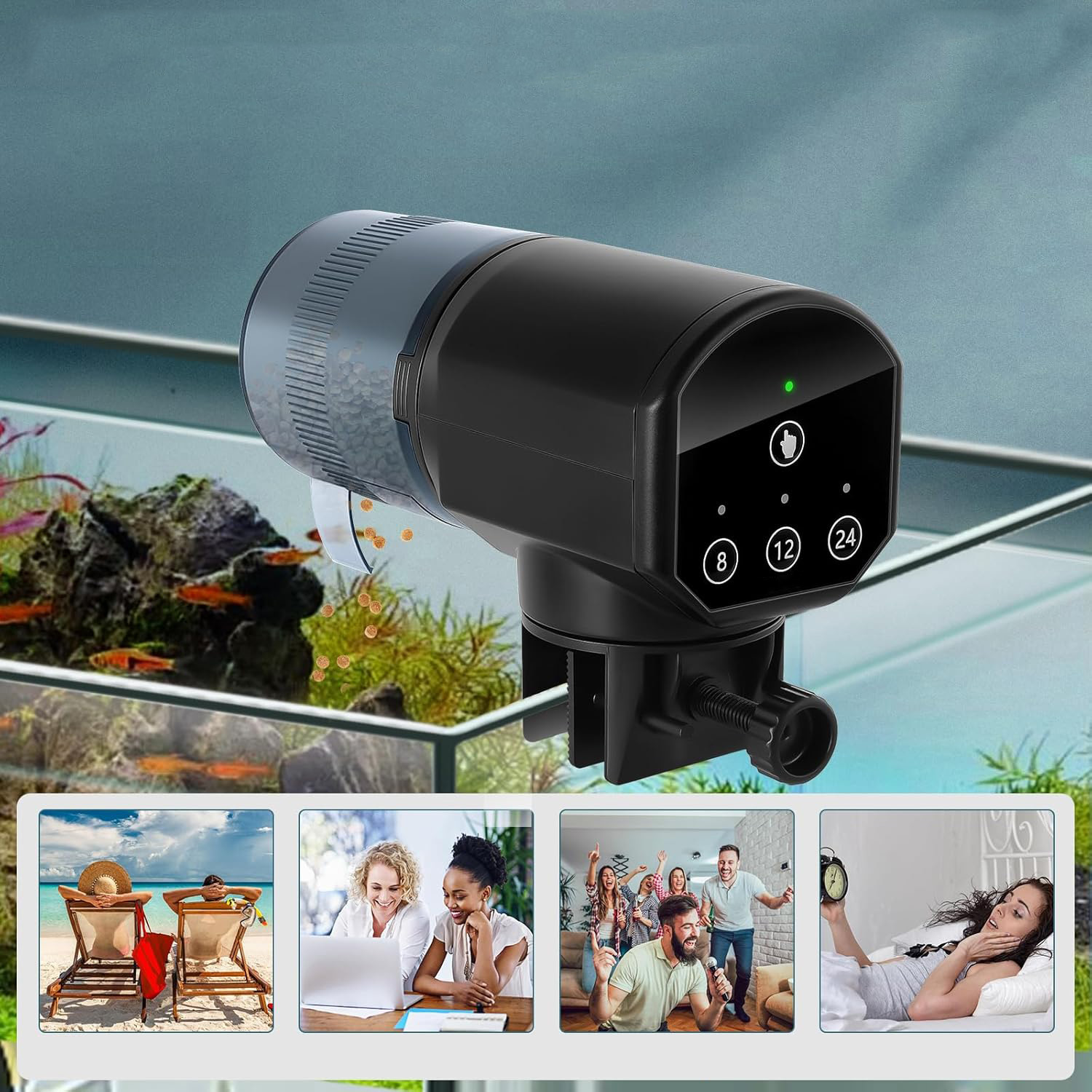 🐟🐟Два способа установки: Наш автоматический регулятор подачи рыбы подходит для различных типов аквариумов. Его можно прикрепить к крышке аквариума с помощью регулируемого зажимного основания толщиной от 0 до 1 дюйма, или вы можете прикрепить кормушки для рыбы к крышке аквариума с помощью специально разработанной двусторонней наклейки. Вращающаяся на 360° конструкция позволяет расположить корм для рыб в идеальном месте.
