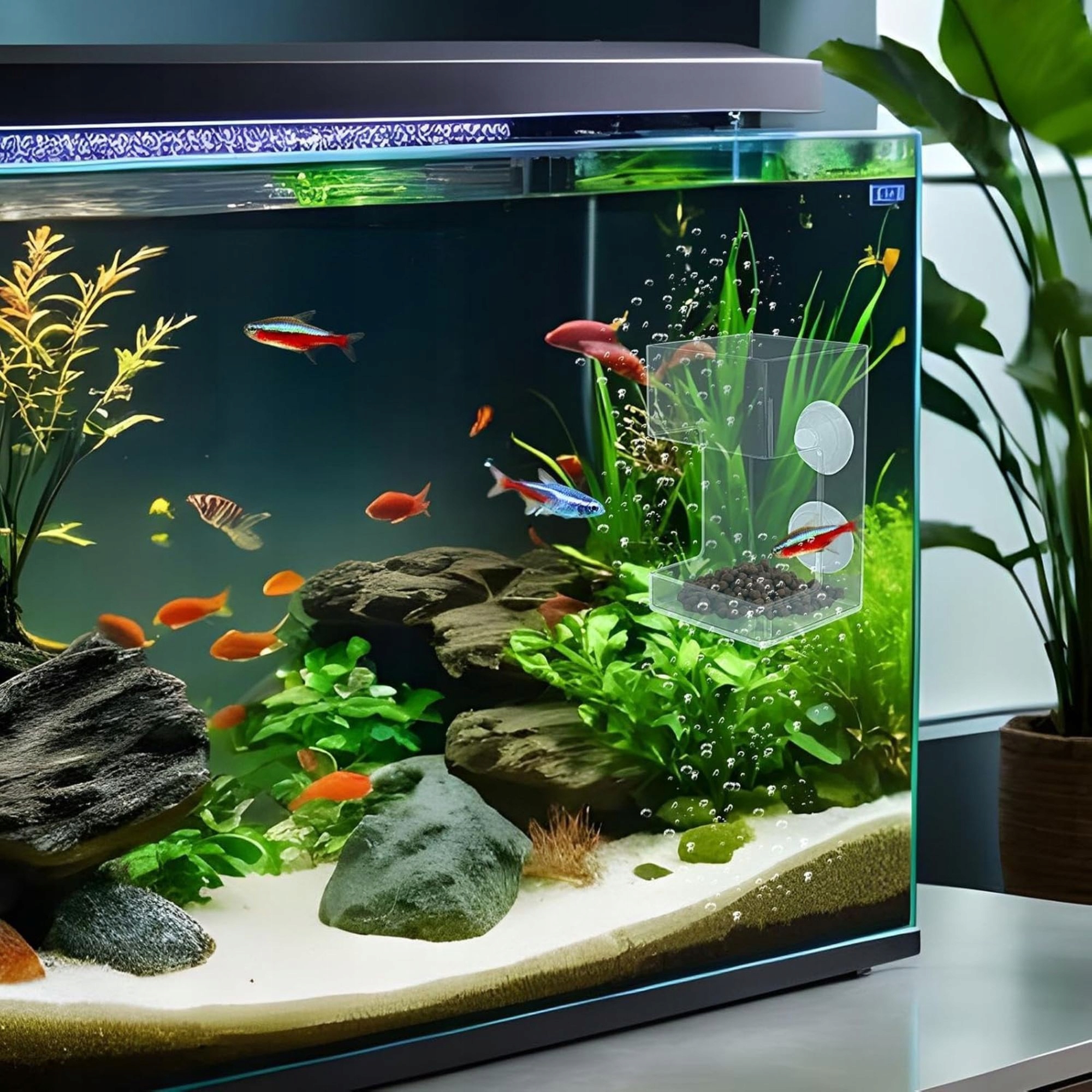 ЛОТОК ДЛЯ КОРМКИ ДЛЯ АКВАРИУМА С ПРИСОСКАМИ, КВАДРАТНЫЙ