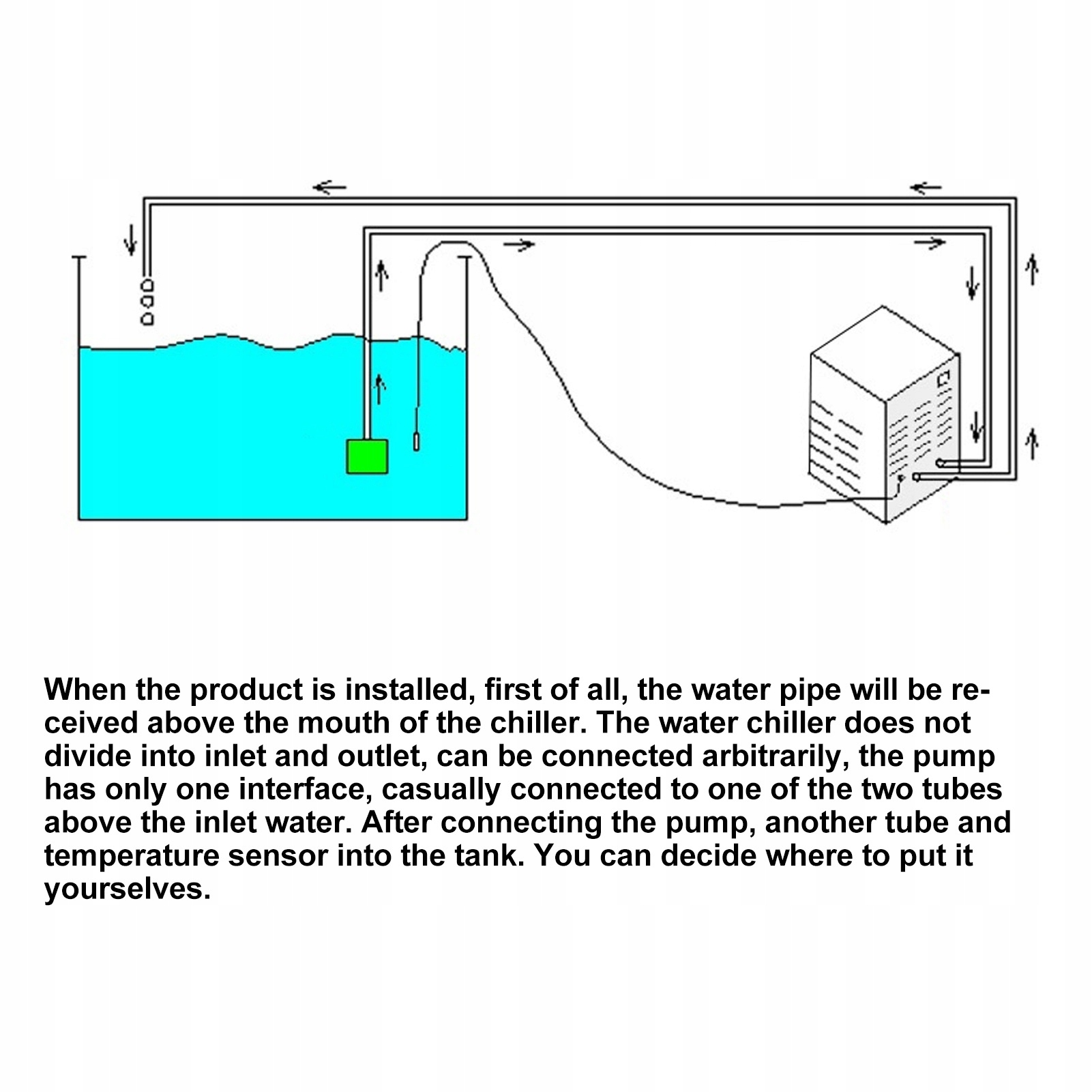 - 1. После установки изделия, в первую очередь, водопроводную трубу размещают над выходным отверстием холодильной установки. Блок охлажденной воды не разделен на вход и выход, его можно подключить свободно, насос имеет только один разъем, обычно подключаемый к одной из двух трубок над входом воды. После подключения насоса к баку вставляем еще одну трубку и датчик температуры. Вы можете решить, где его разместить.